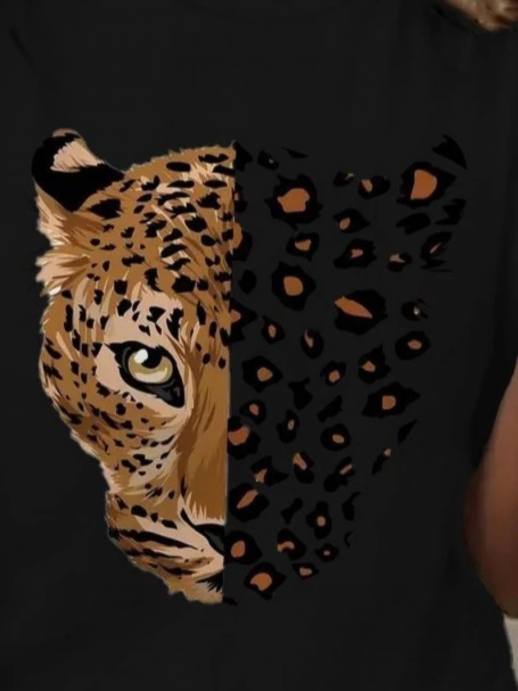 Kadın Kısa Kollu Bisiklet Yaka Desenli Viskon Bluz