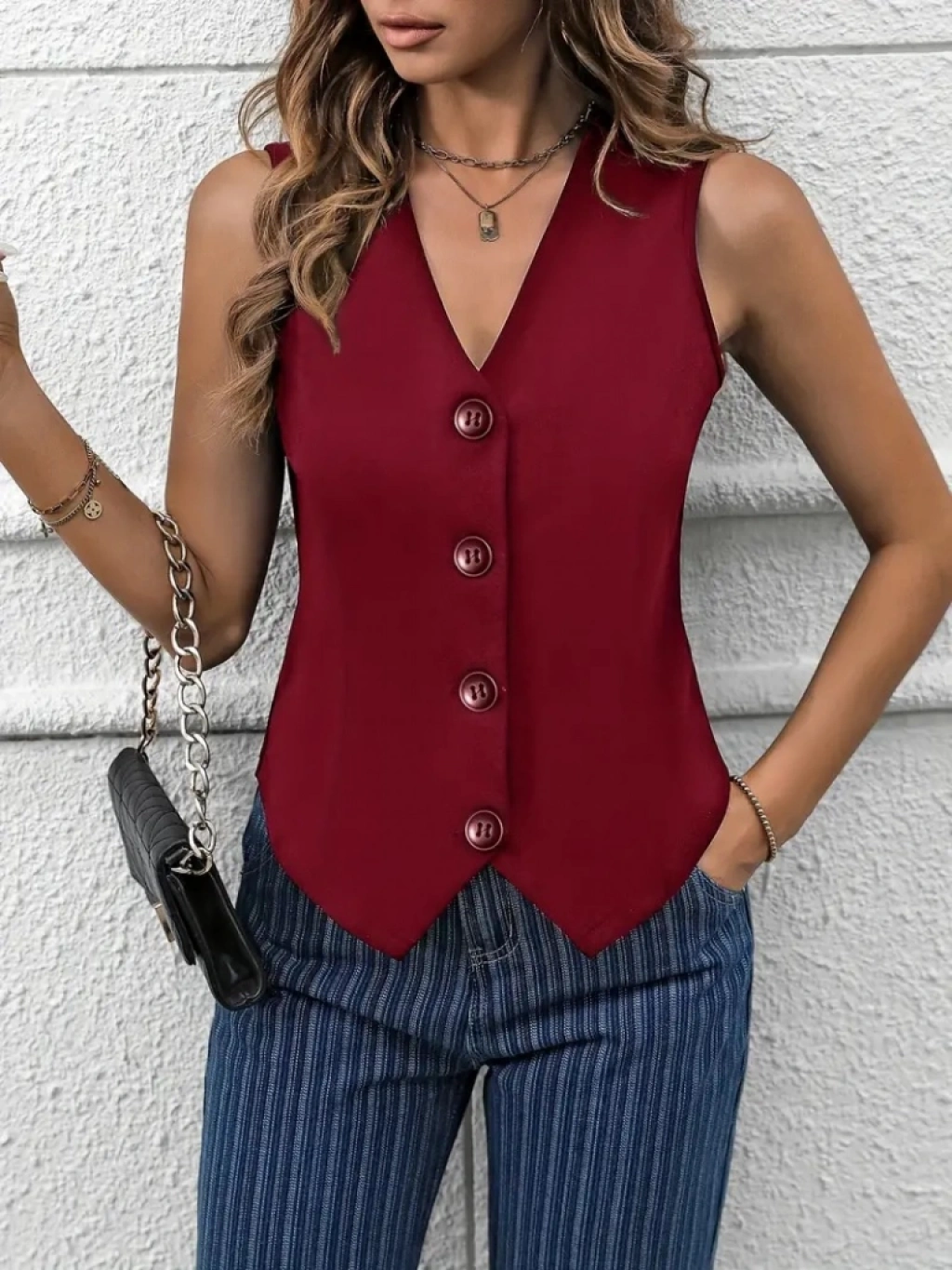 Kadın Sıfır Kollu V Yakalı önden Düğmeli Atlas Yelek