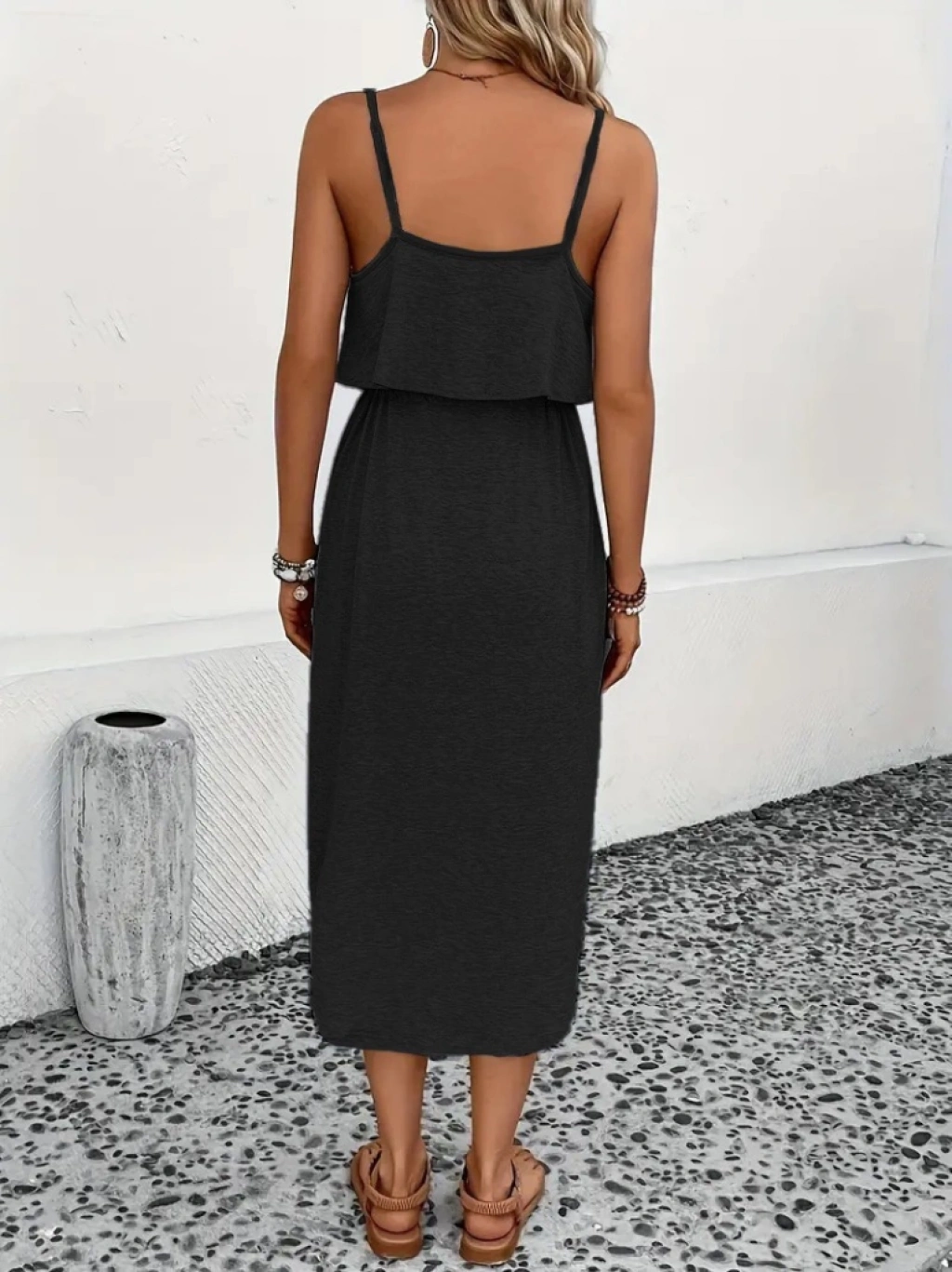 Kadın Askılı V Yakalı Viskon Bluz Ve Bağcıklı Etek Ikili Takım
