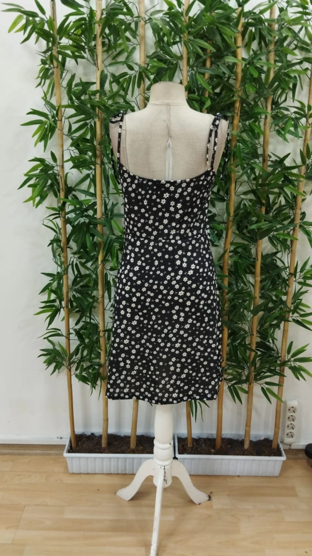 Kadın Ip Askılı Omuzlardan Bağcıklı çiçek Desenli Süprem Elbise