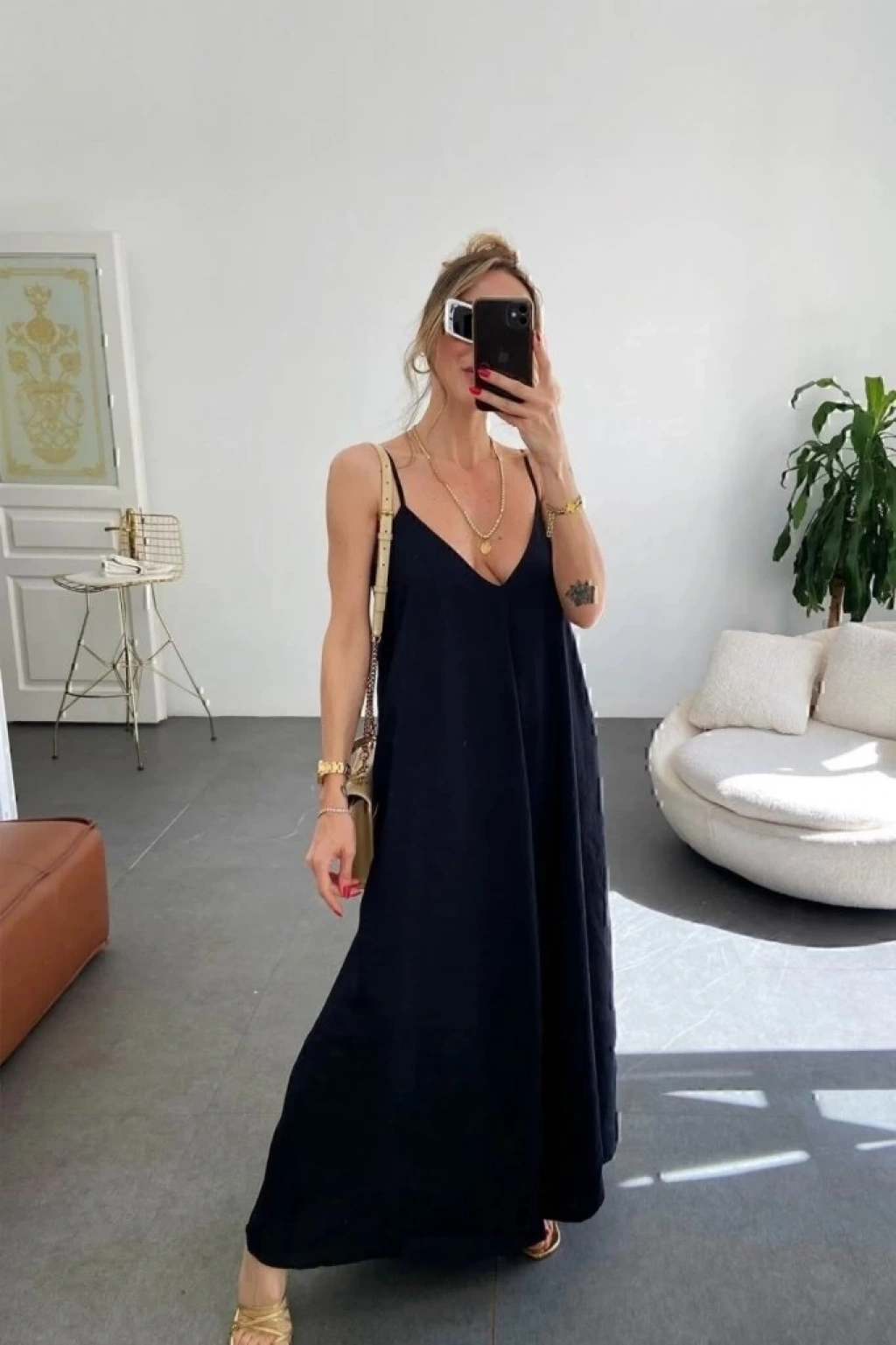 Kadın Ip Askılı V Yakalı Uzun Aerobin Elbise