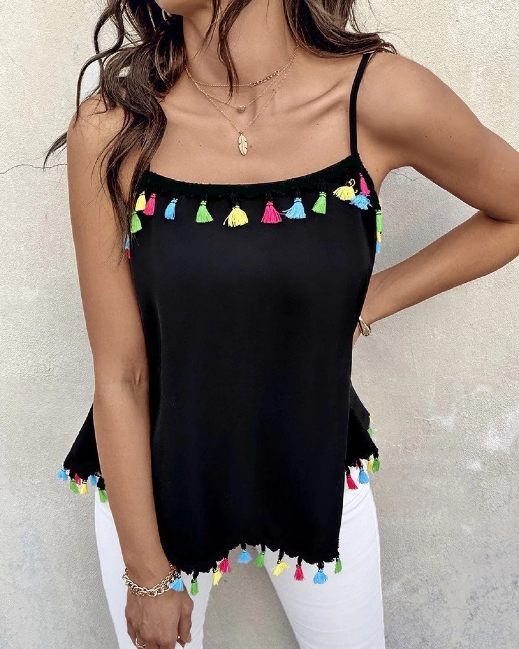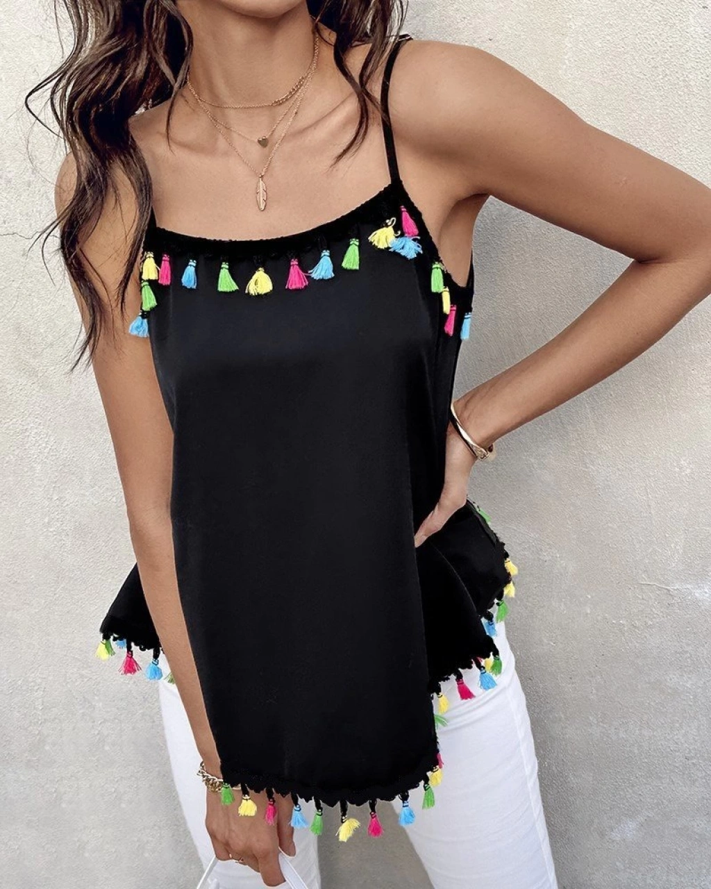 Kadın Ip Askılı Püskül Detaylı Sandy Bluz