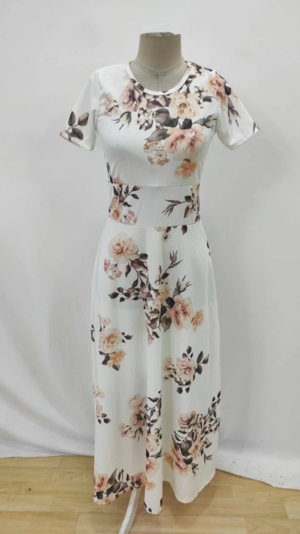 Kadın Kısa Kollu Bisiklet Yaka Puantiyeli Maksi örme Krep Elbise