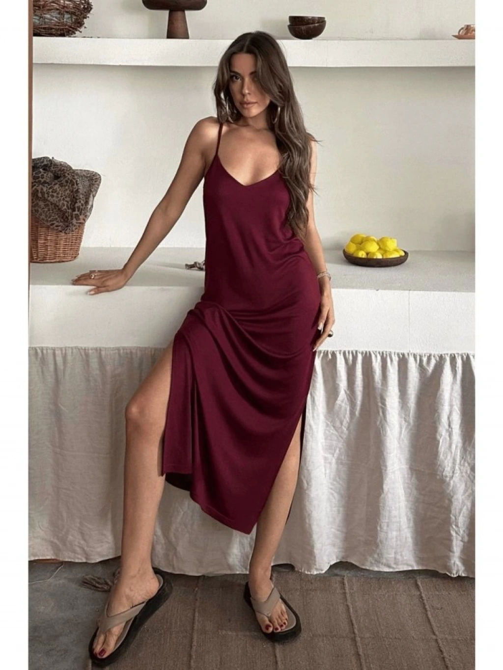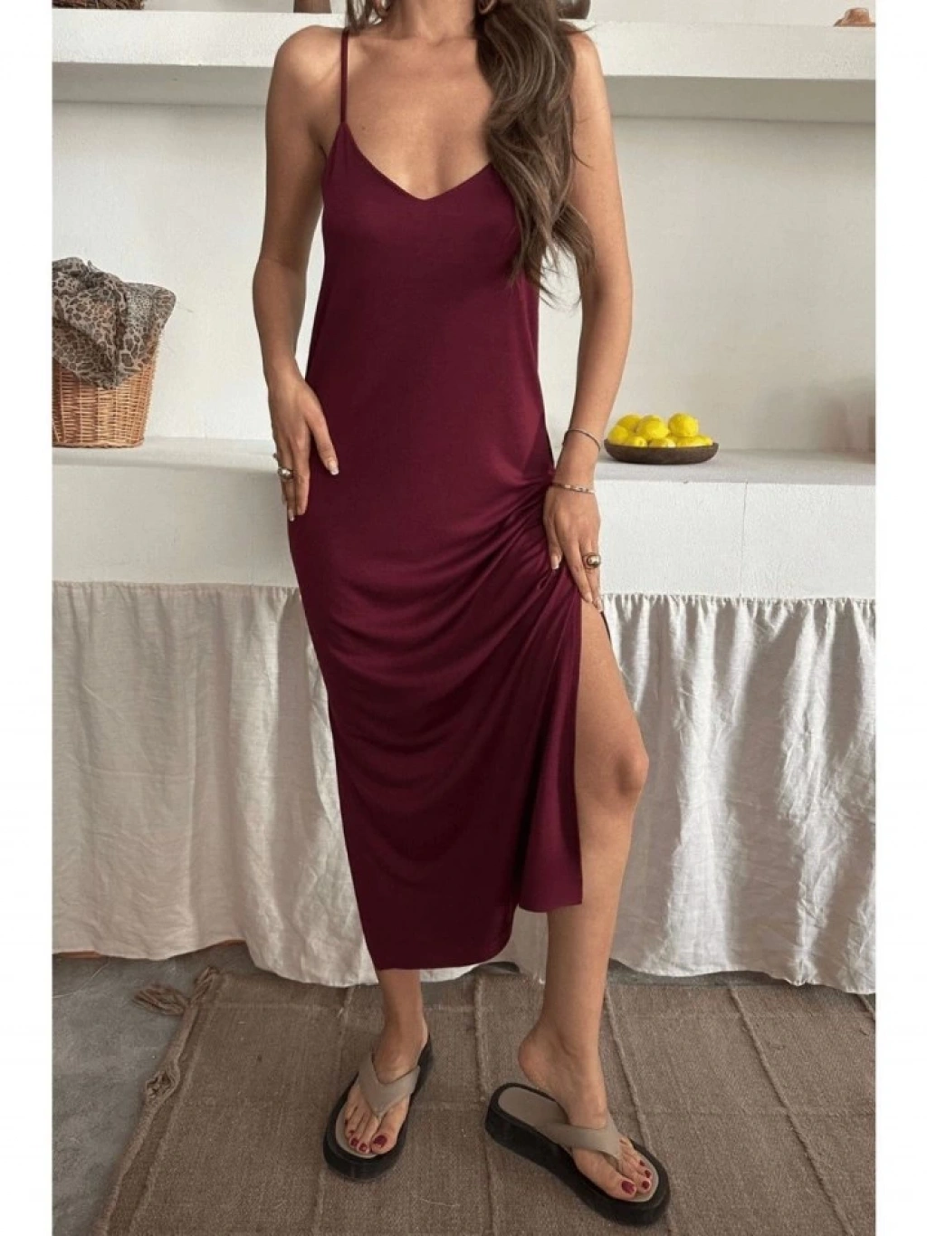 Kadın Siyah Asansör Askılı Çift Yırtmaçlı Helen Elbise