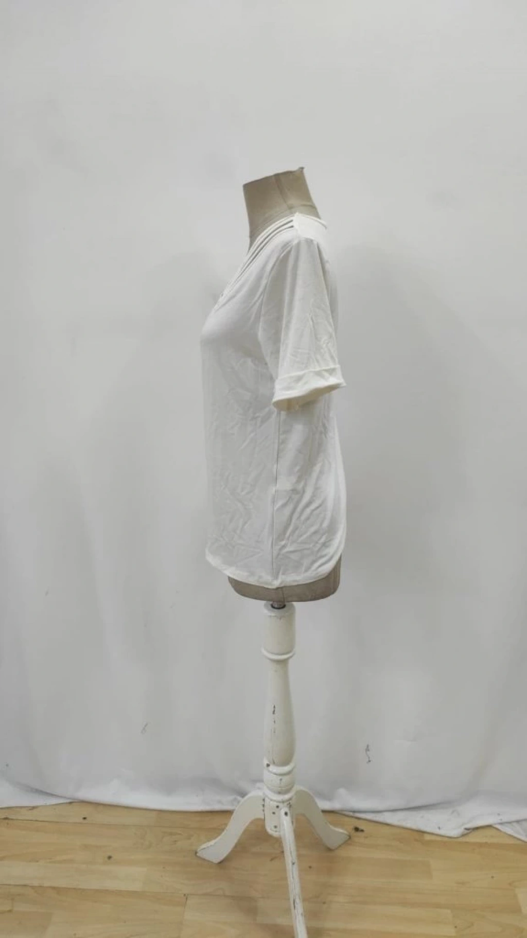 Kadın Kısa Kollu V Yakalı şerit Detaylı Viskon Bluz
