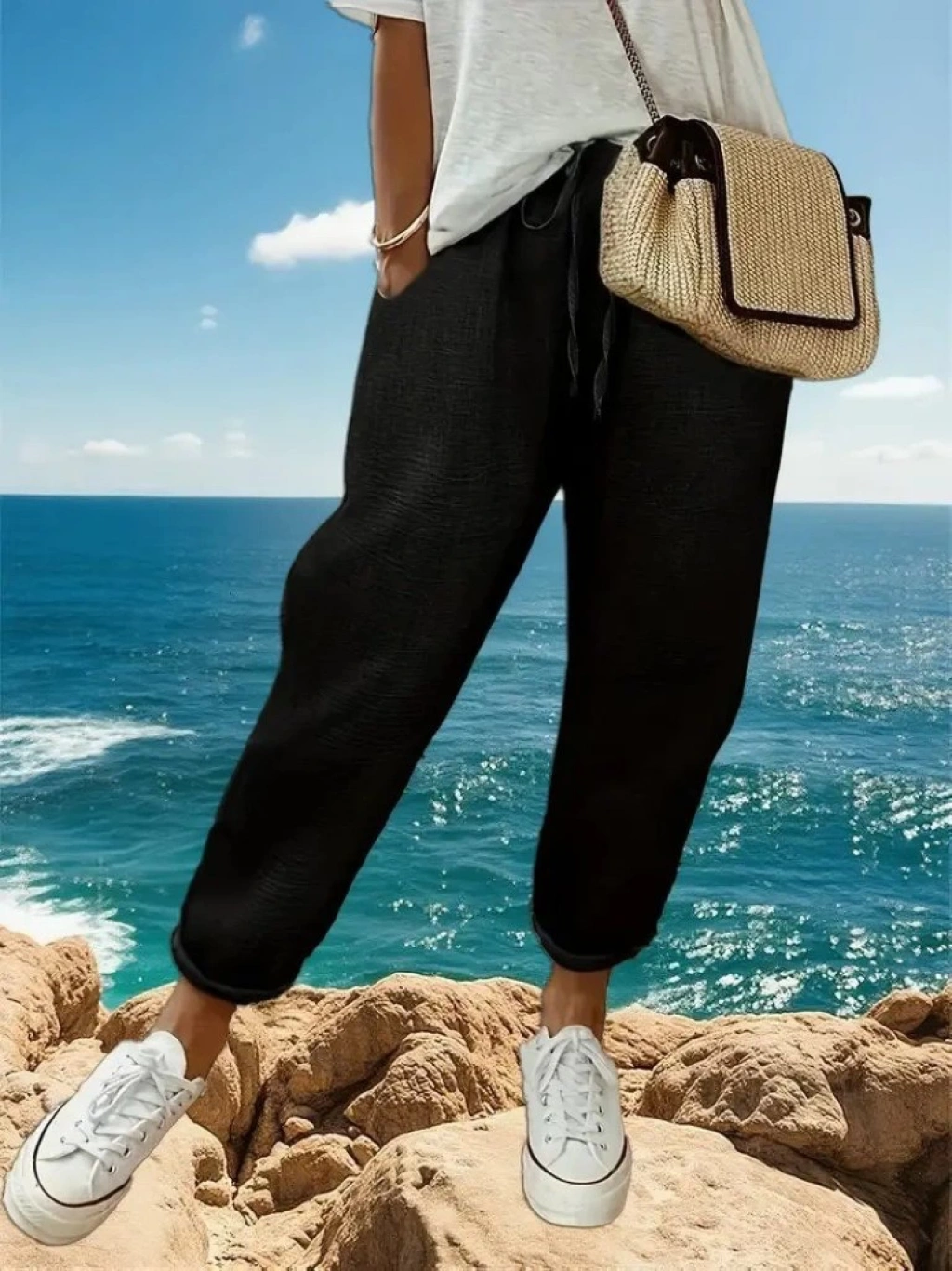 Kadın Yüksek Bel Lastikli Belde Bağcık Detaylı Aerobin Pantolon