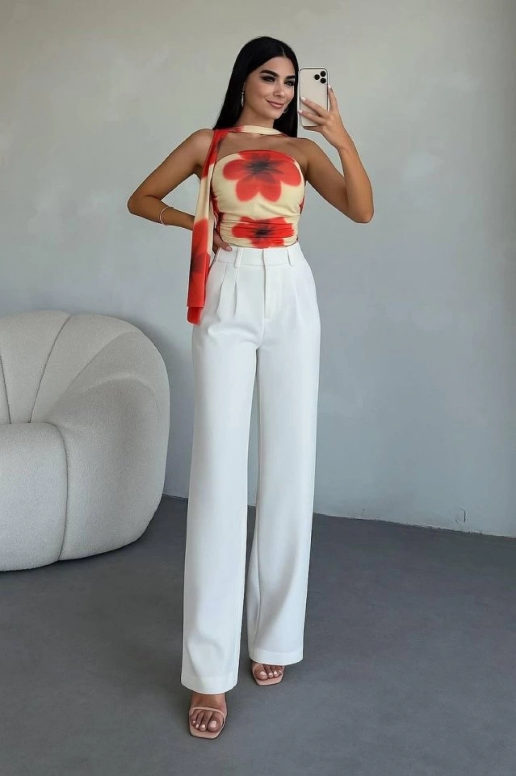 Kadın Yüksek Bel Plise Detay Bol Paça Pantolon