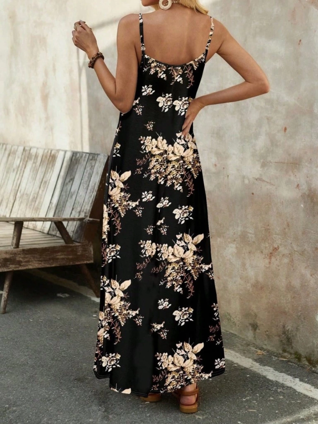 Kadın Ip Askılı V Yakalı çiçek Desenli Süprem Elbise