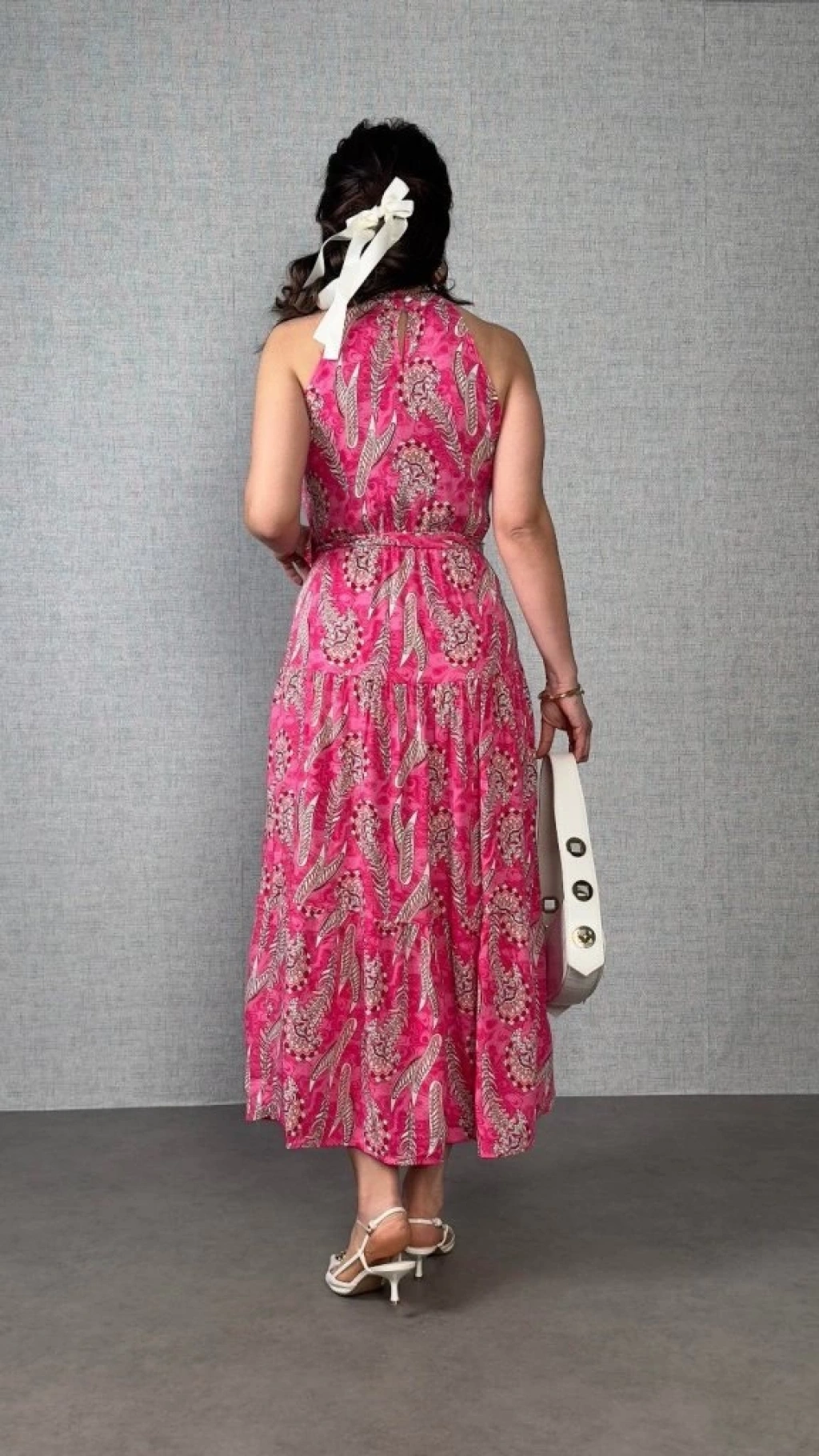 Kadın Omuzlardan Açık Boyundan Geçmeli Desenli Süprem Bluz