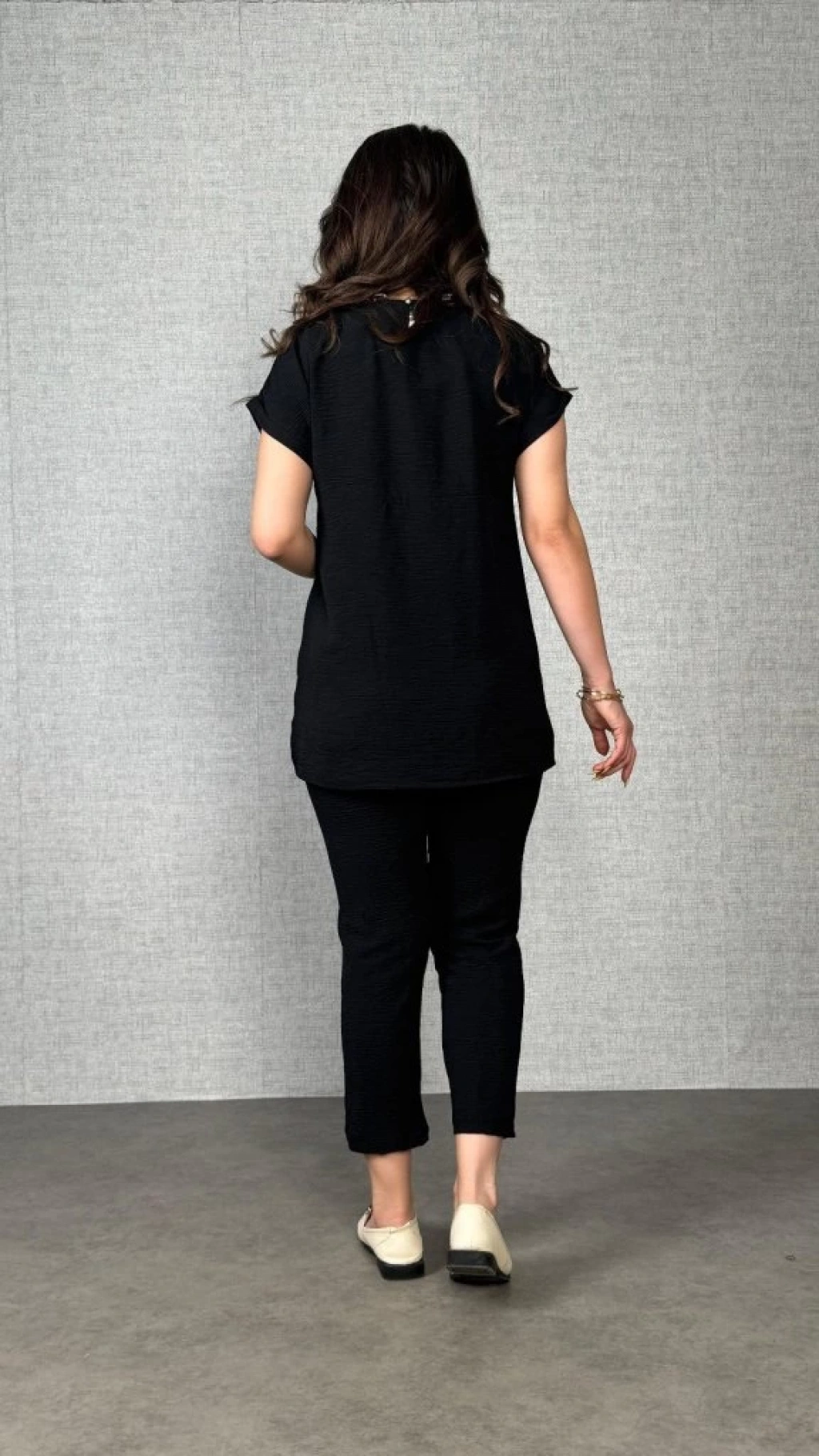Kadın Kısa Kollu Yuvarlak Yaka Aerobin Bluz Ve Pantolon Ikili Takım