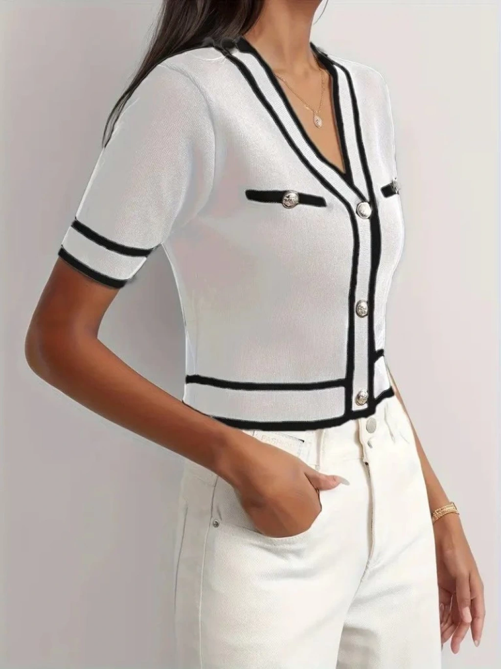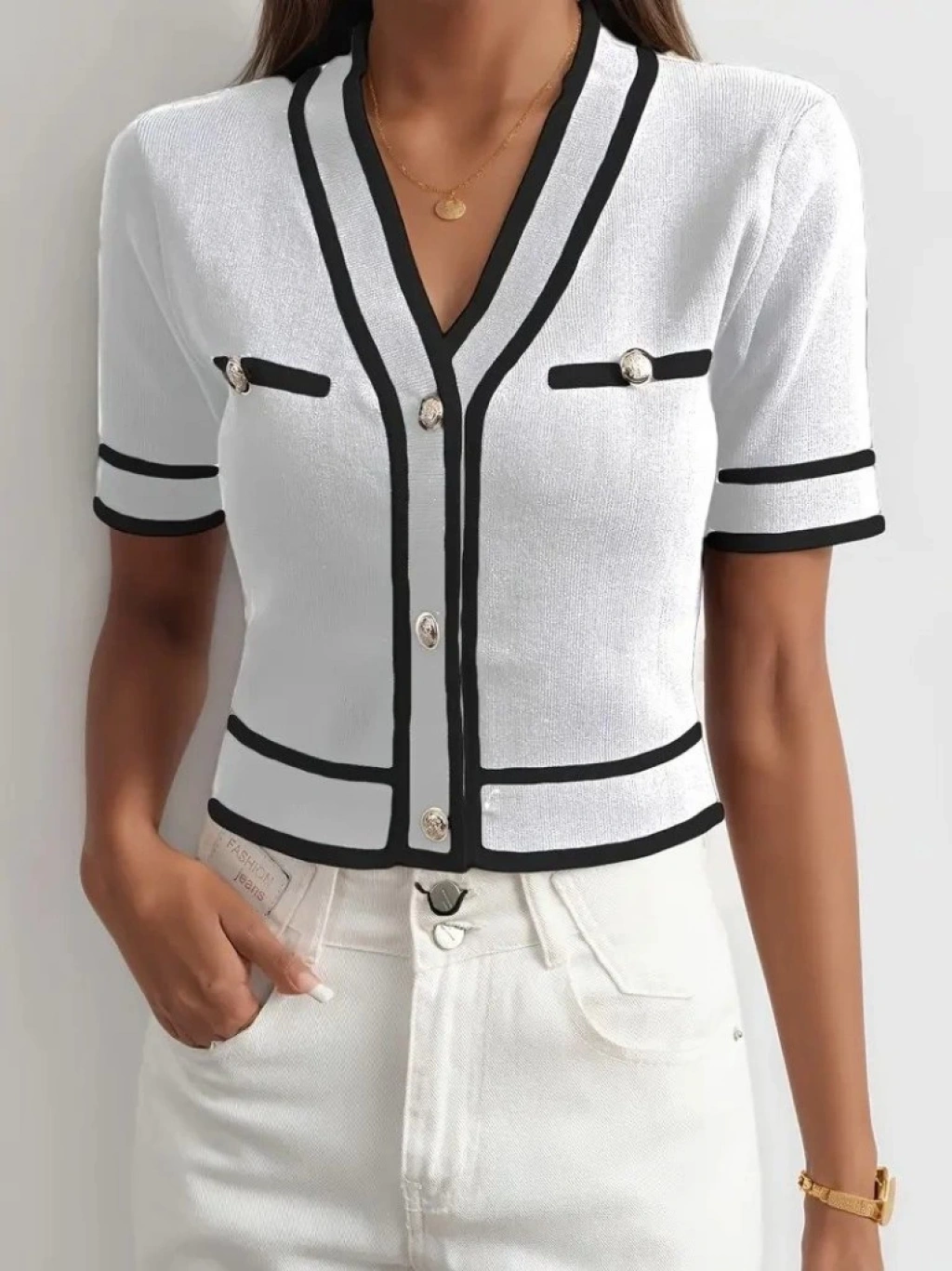 Kadın Kısa Kollu önden Düğmeli Triko Bluz
