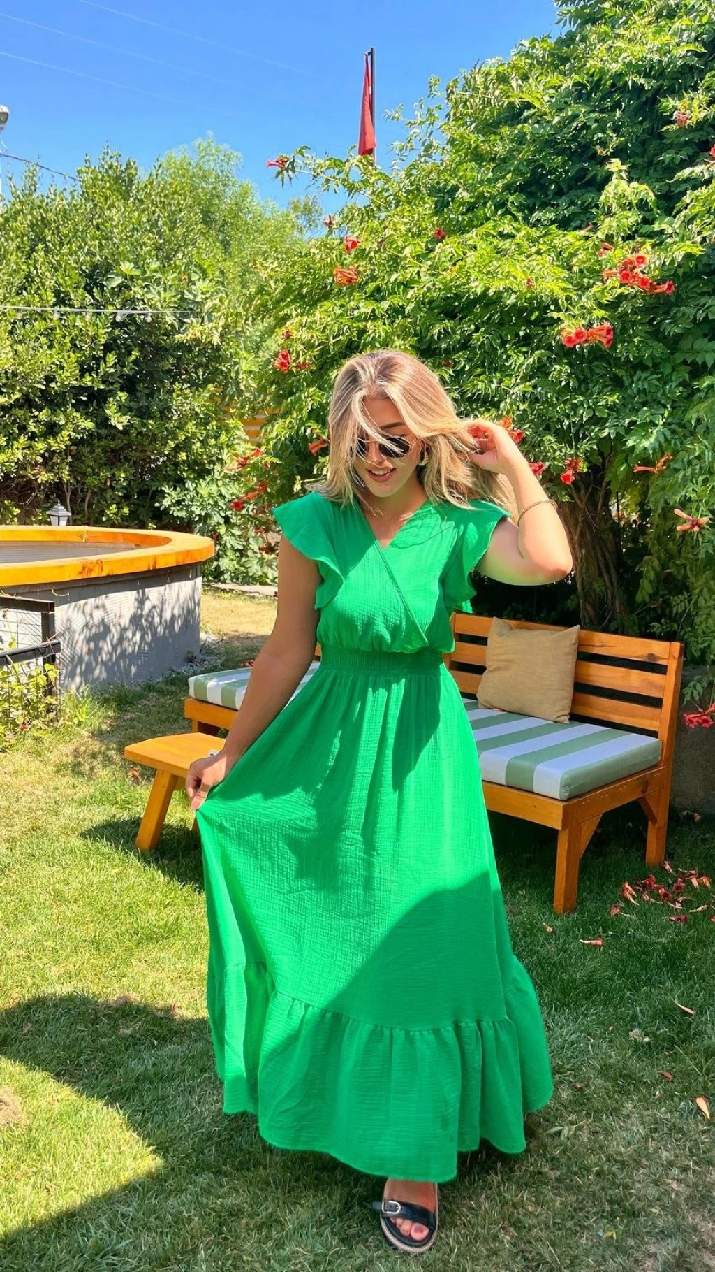 Modelin Ölçüleri: Boy:165, Kg:55, Göğüs:90, Bel:72, Kalça: 100