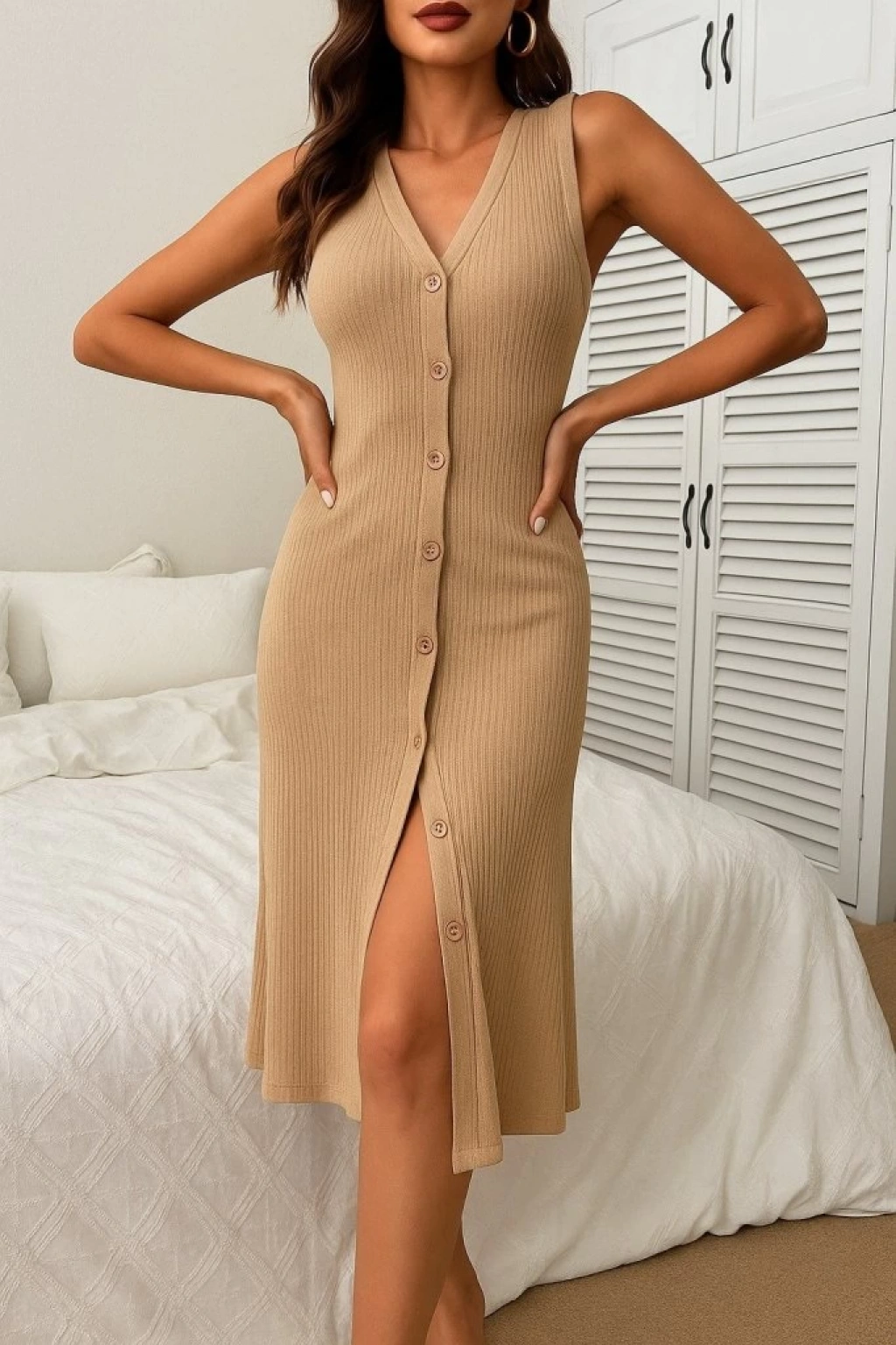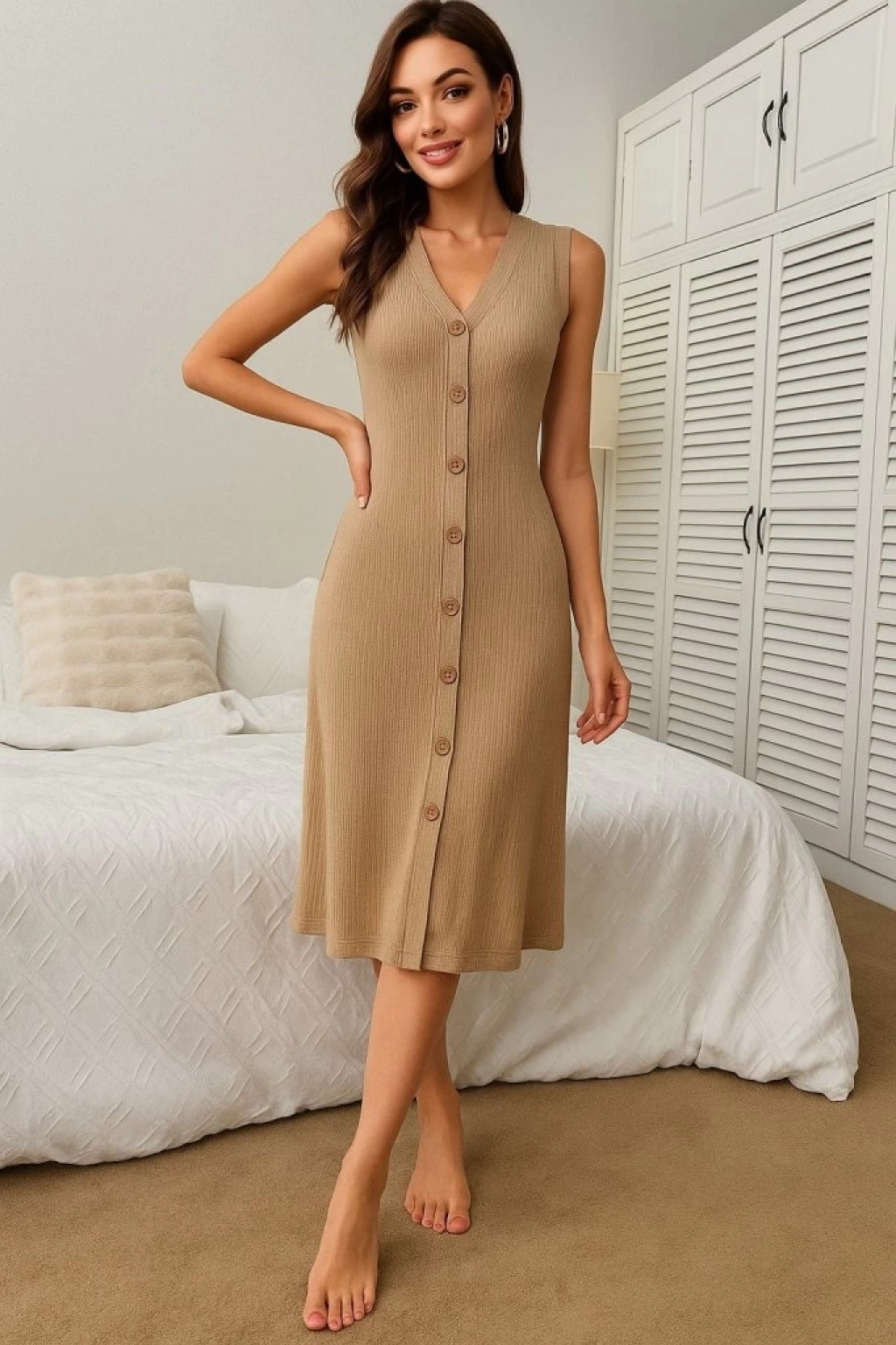 Kadın V Yakalı önden Düğmeli Kaşkorse Elbise