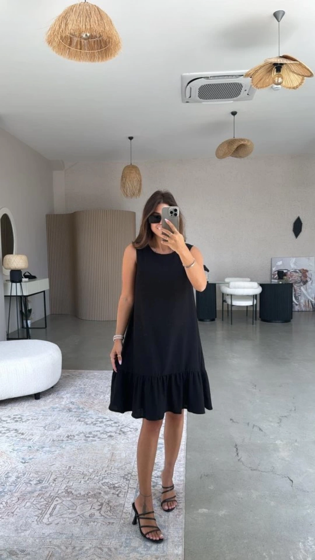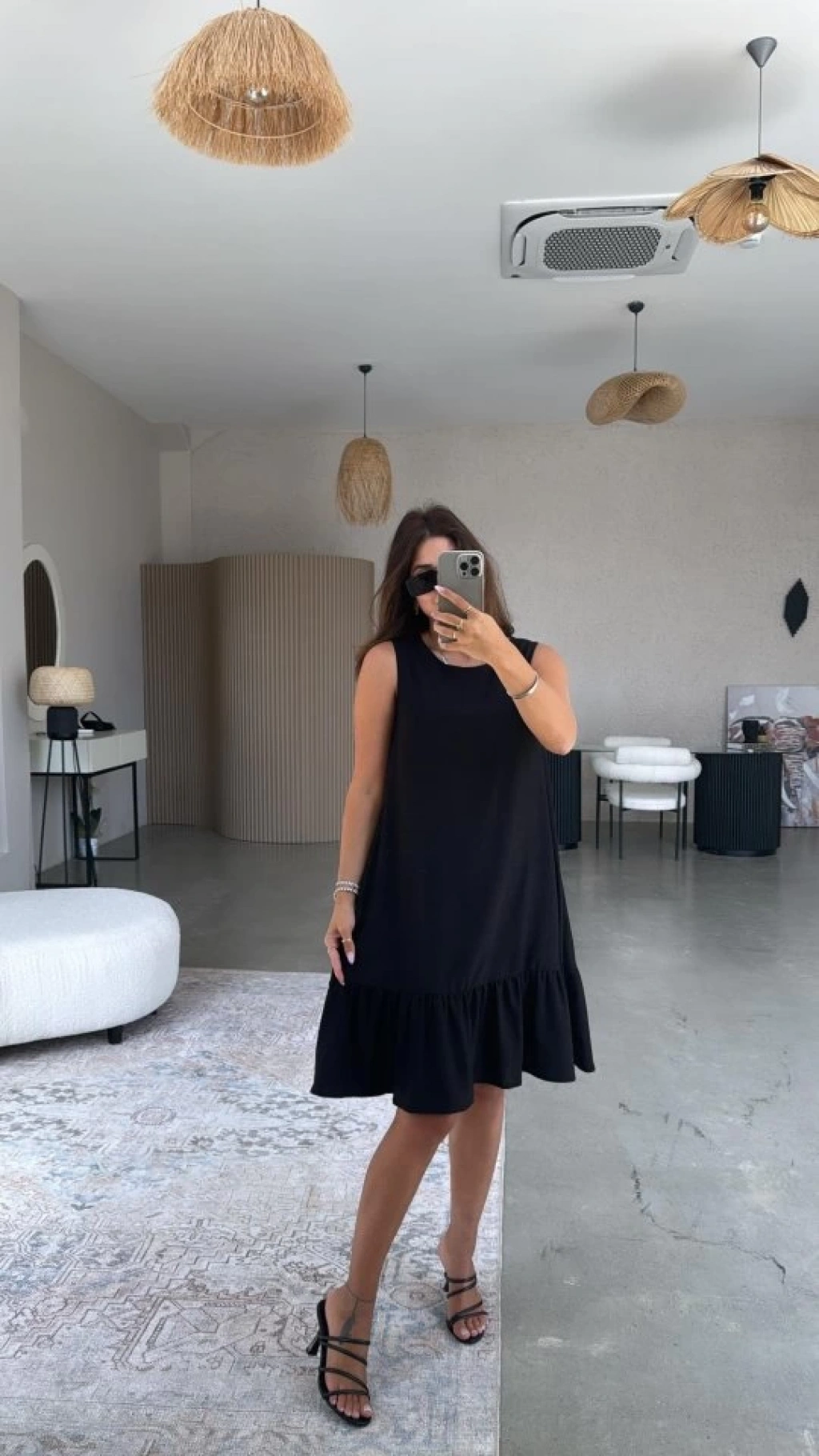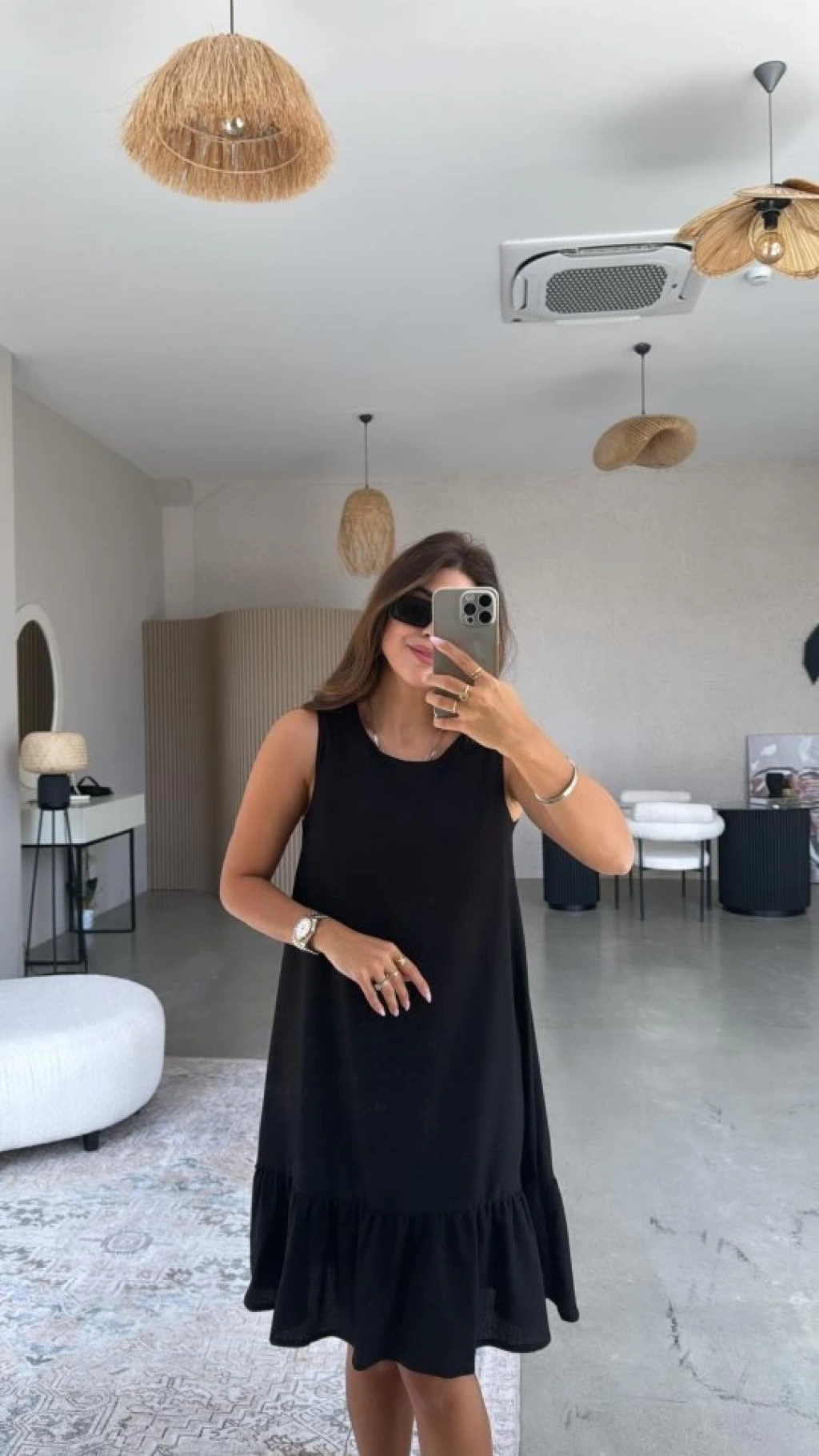 Kadın Bisiklet Yaka Eteği Volanlı Bürümcük Elbise