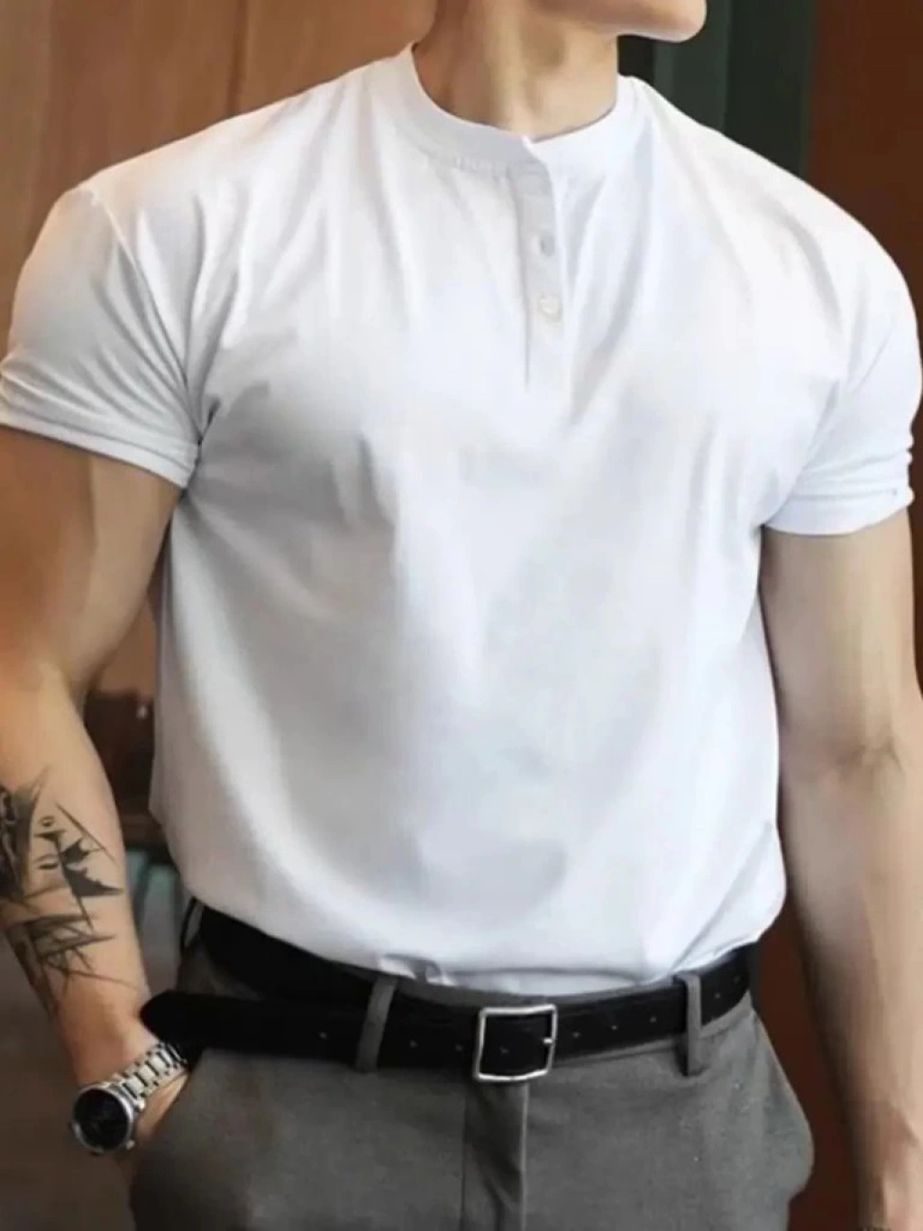 Erkek Kısa Kollu Hakim Yaka önü Düğmeli Viskon Bluz