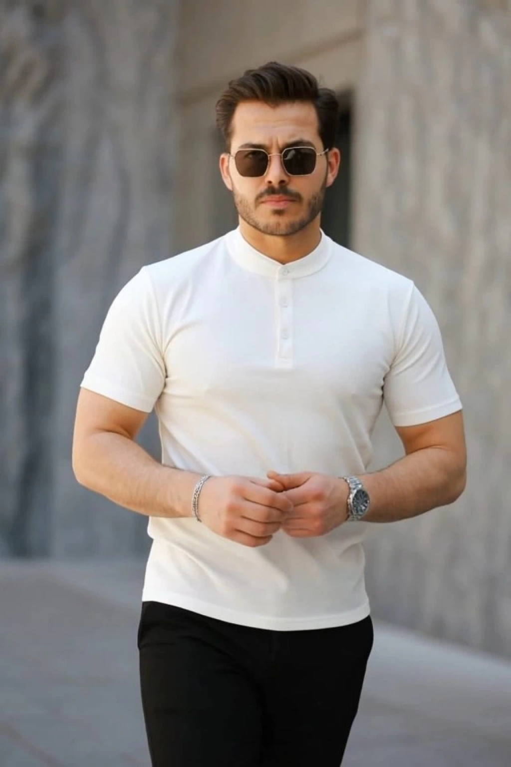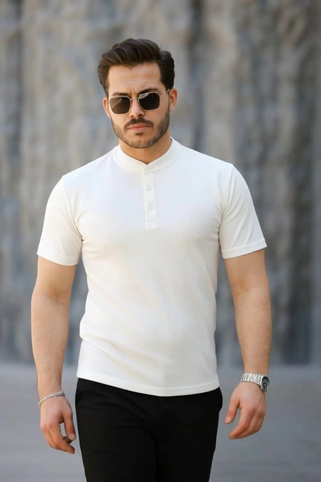 Erkek Kısa Kollu Hakim Yaka önü Düğmeli Viskon Bluz