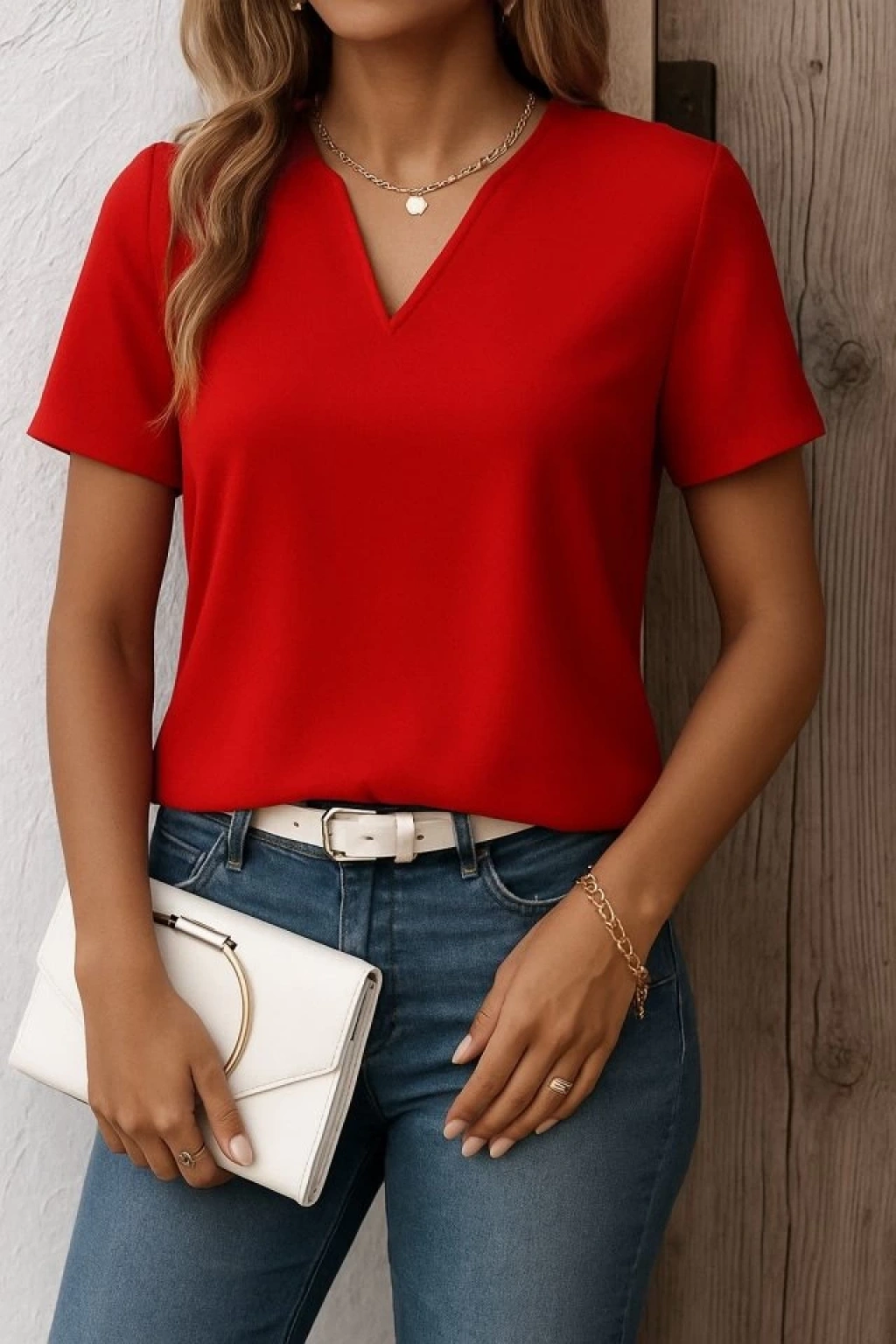 Kadın Kısa Kollu V Yakalı Ithal Krep Elbise
