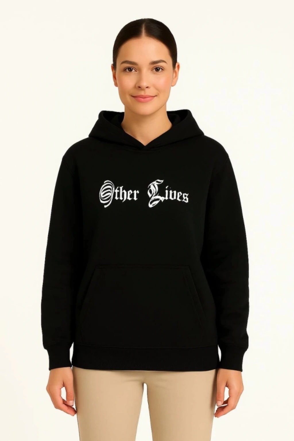 Üç İplik Kapşonlu ön Ve Arka Baskılı SweatShirt Hoodie- Siyah