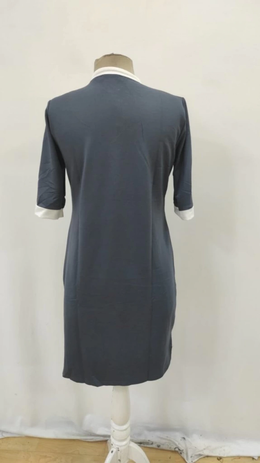 Kadın Kısa Kollu Yakadan Fermuarlı Cepli Yandan Yırtmaçlı Viskon Elbise