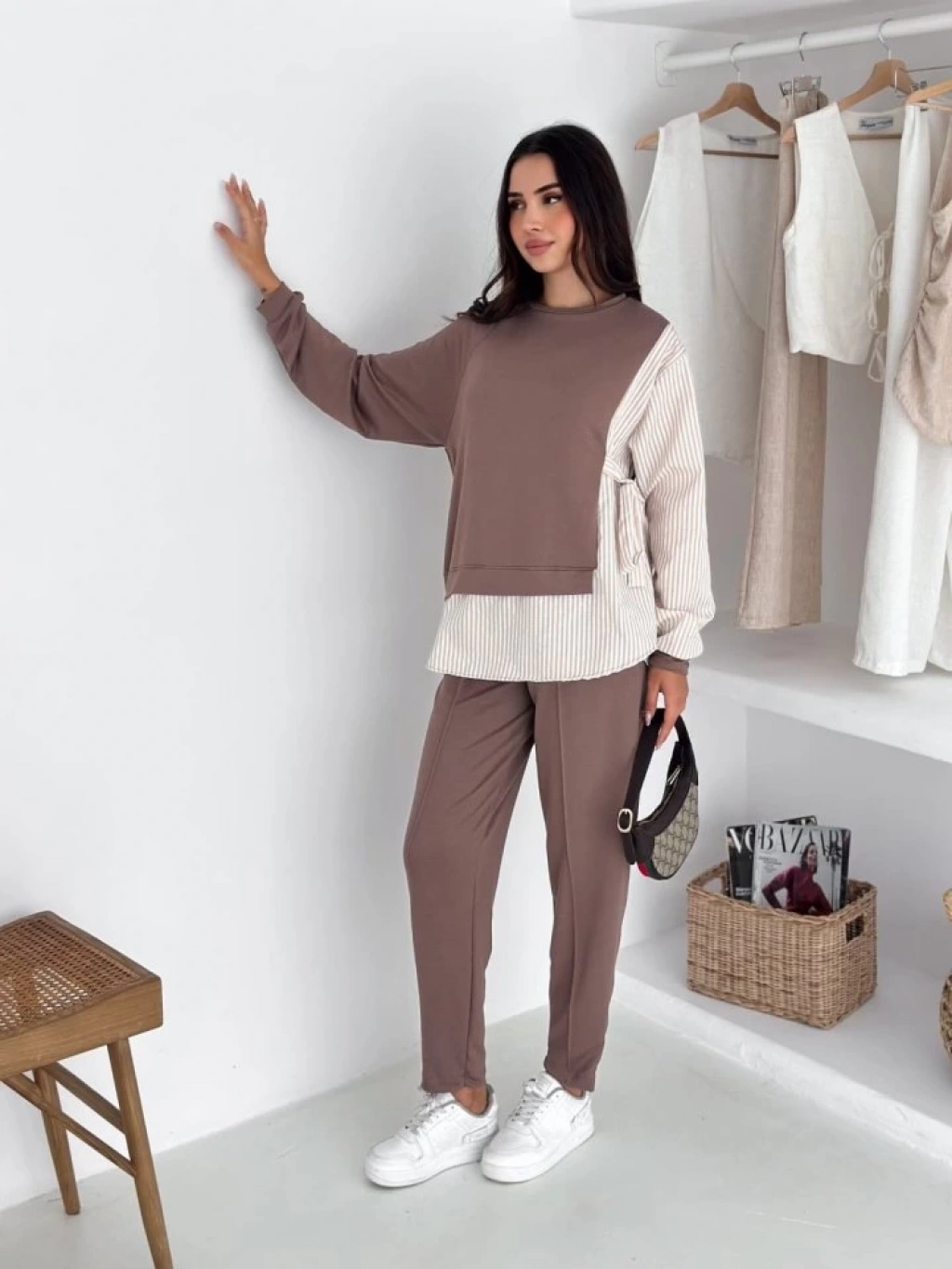 Kadın Gömlek Detay çizgili Yandan Bağlamalı Ikili Takım