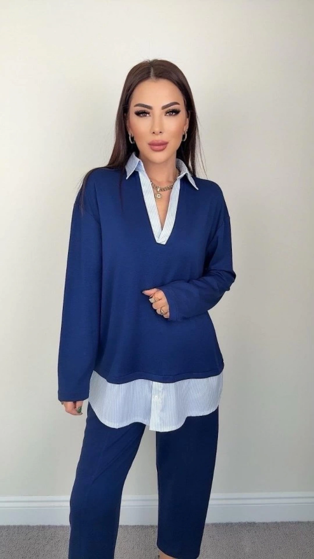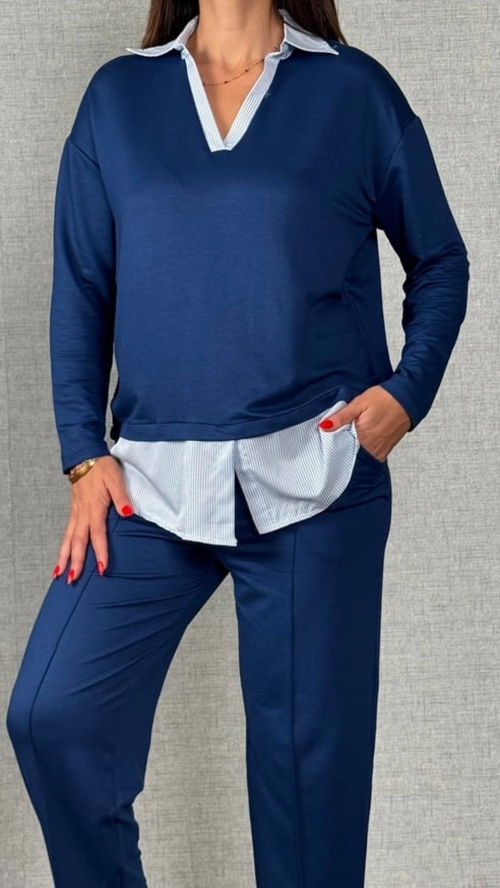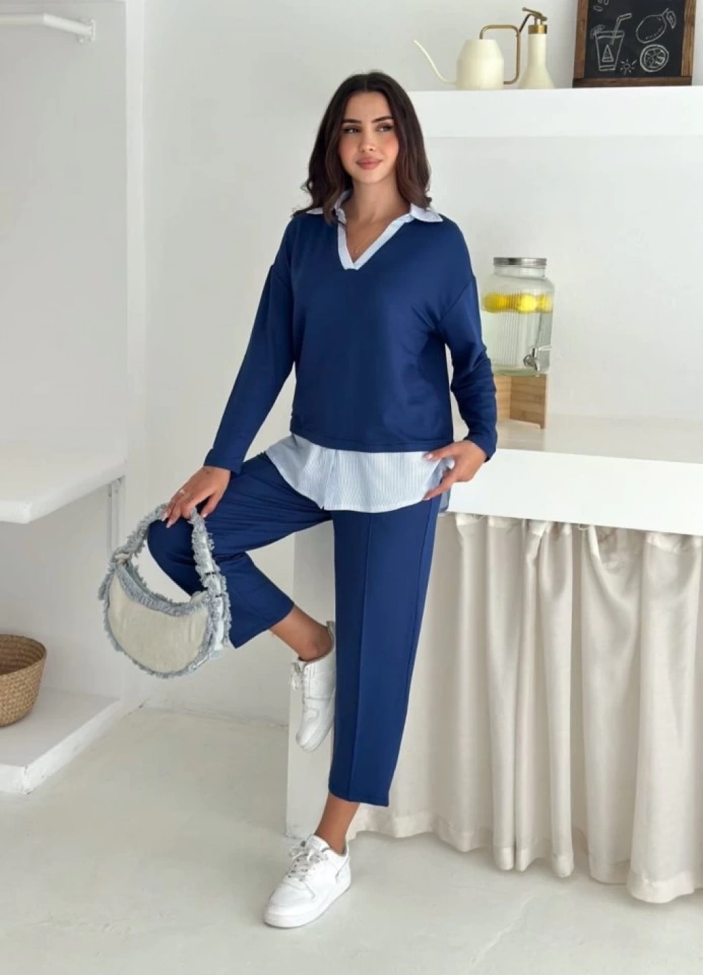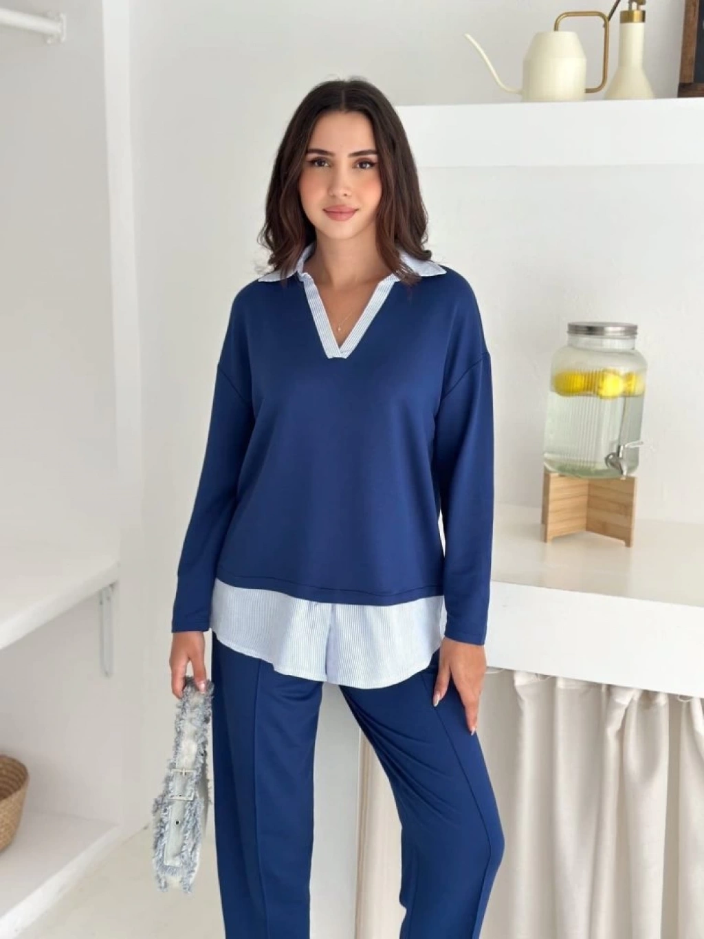 Polo Yaka Gömlekl Detay Salaş Balon Pantolunlu ıkılı Takım