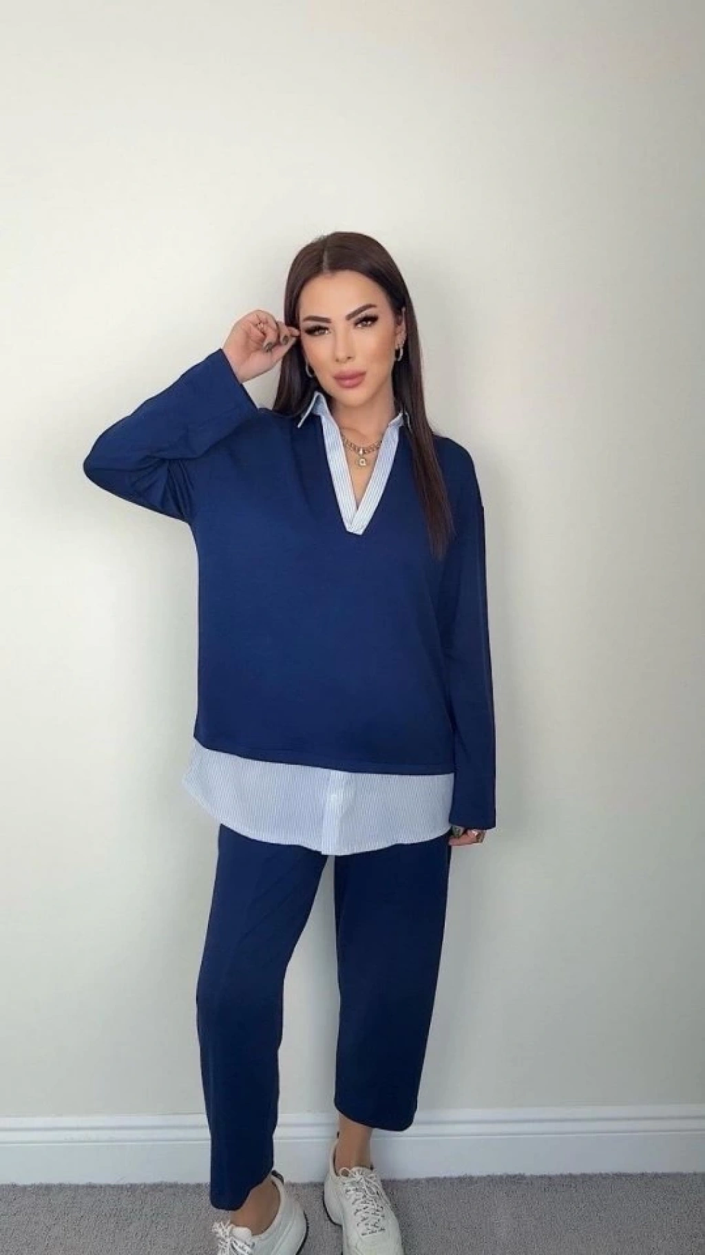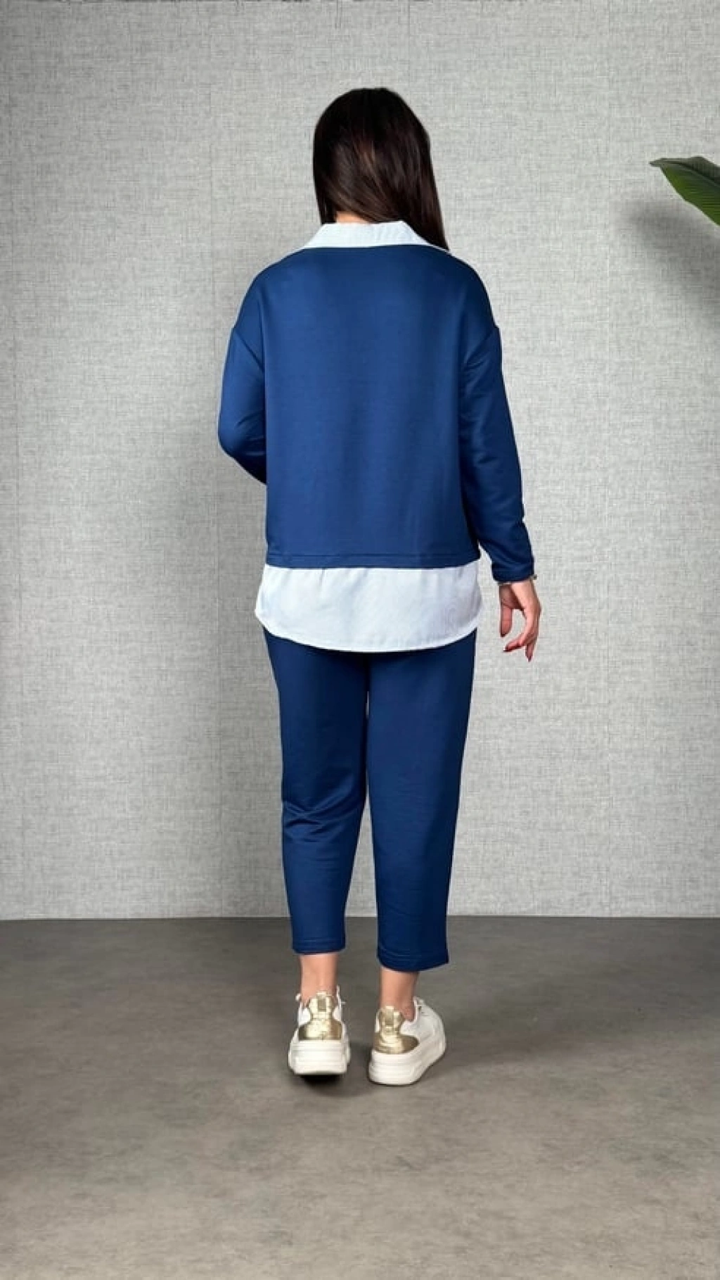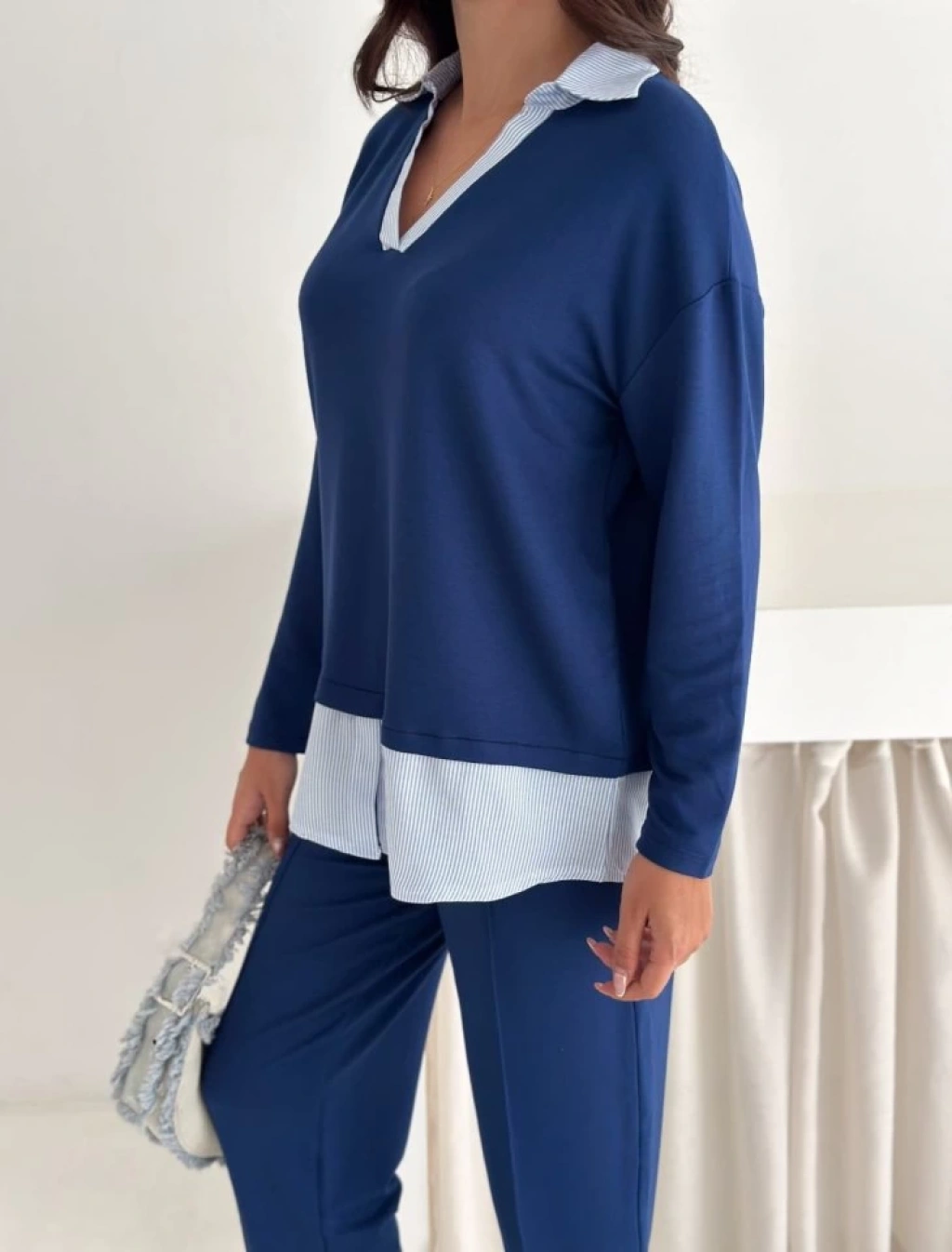 Polo Yaka Gömlekl Detay Salaş Balon Pantolunlu ıkılı Takım