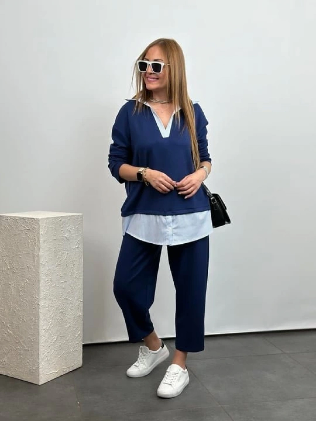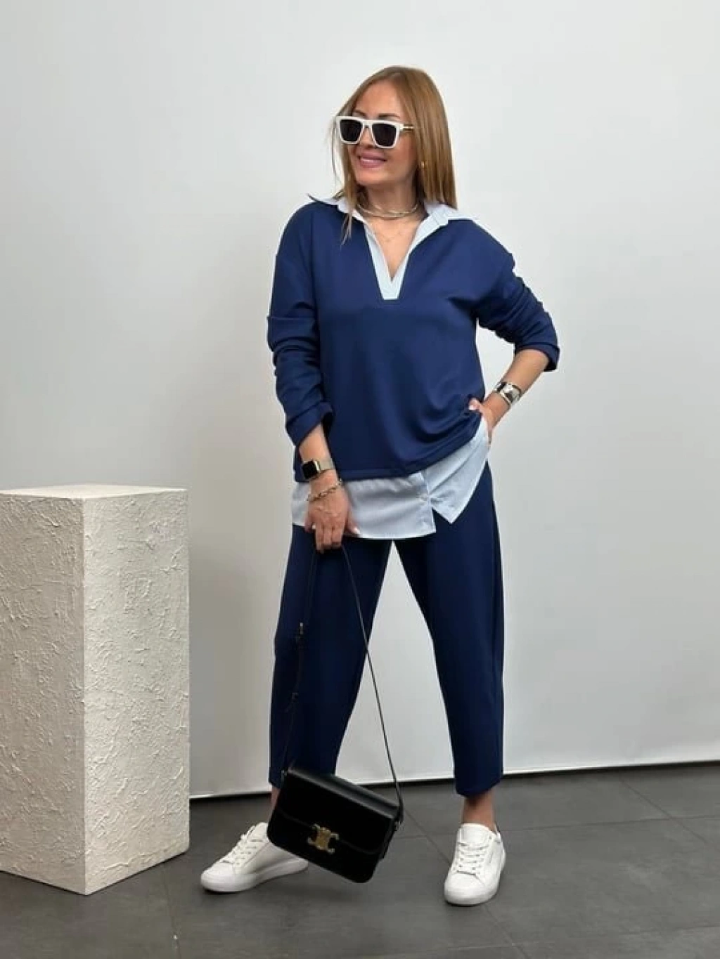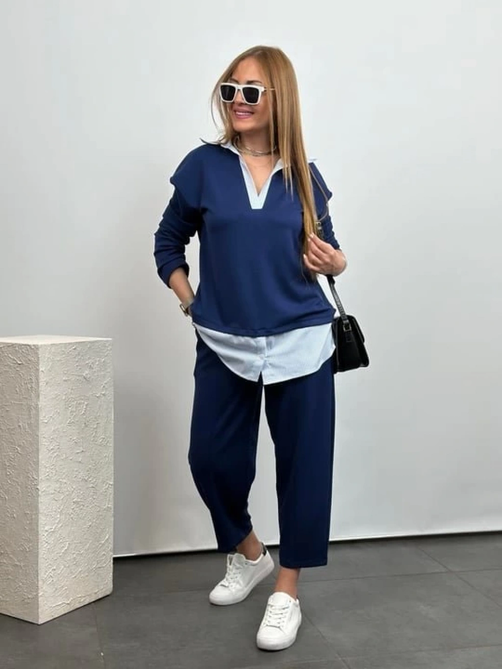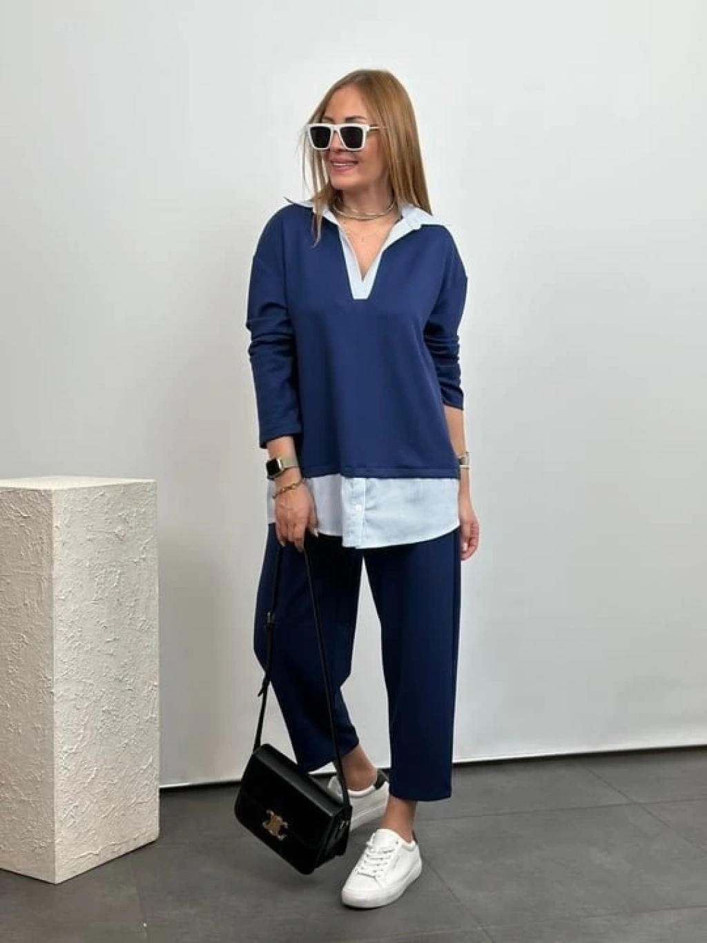 Polo Yaka Gömlekl Detay Salaş Balon Pantolunlu ıkılı Takım
