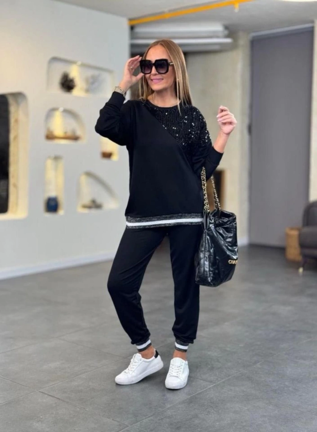 Kadın Modal Kumaş Payetli Sim Ve Ribanalı Detay Ikili Takım