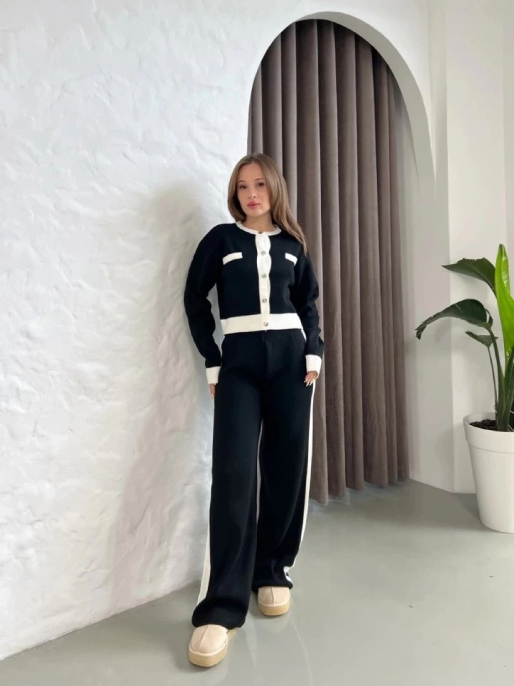 Kadın Uzun Kollu şerit Detay Triko Takım