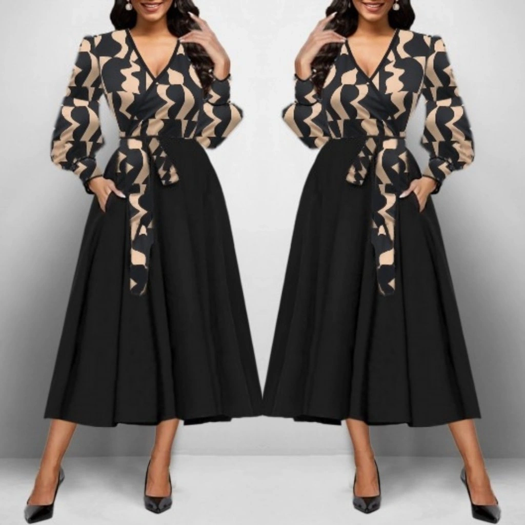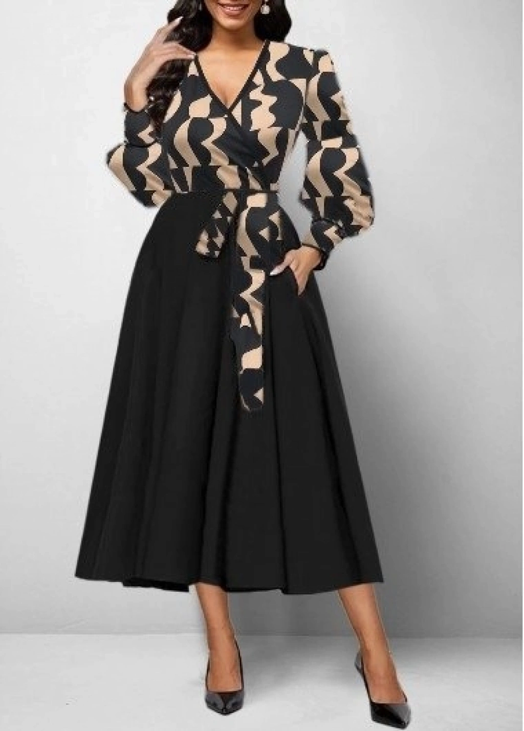 Kadın Uzun Kollu Kruvaze Yaka Dalgıç Krep Midi Boy Elbise