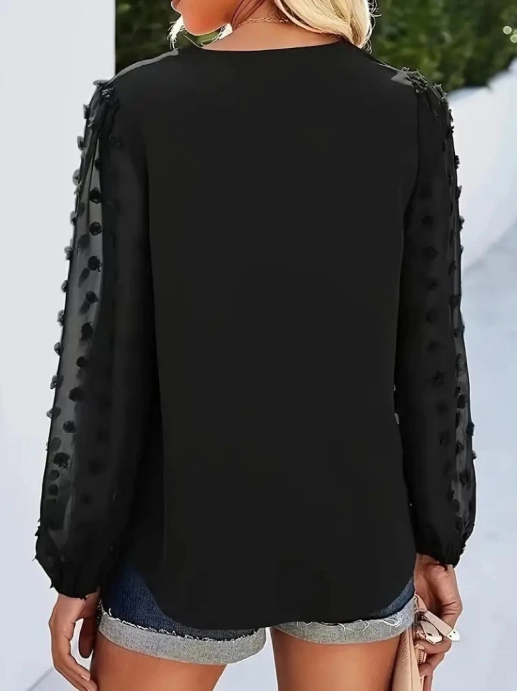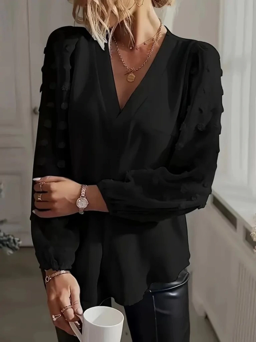 Kadın Uzun Kollu V Yakalı Kolları Popon Detaylı Sandy Bluz