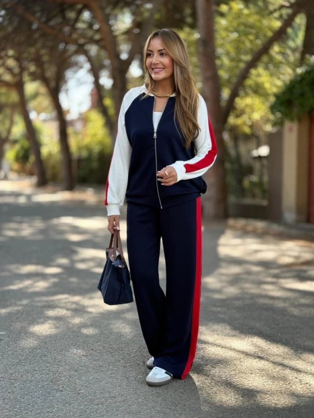 Kadın Hakim Yaka şerit Detay Hırka Ve Bol Paça Pantolon Ikili Takım