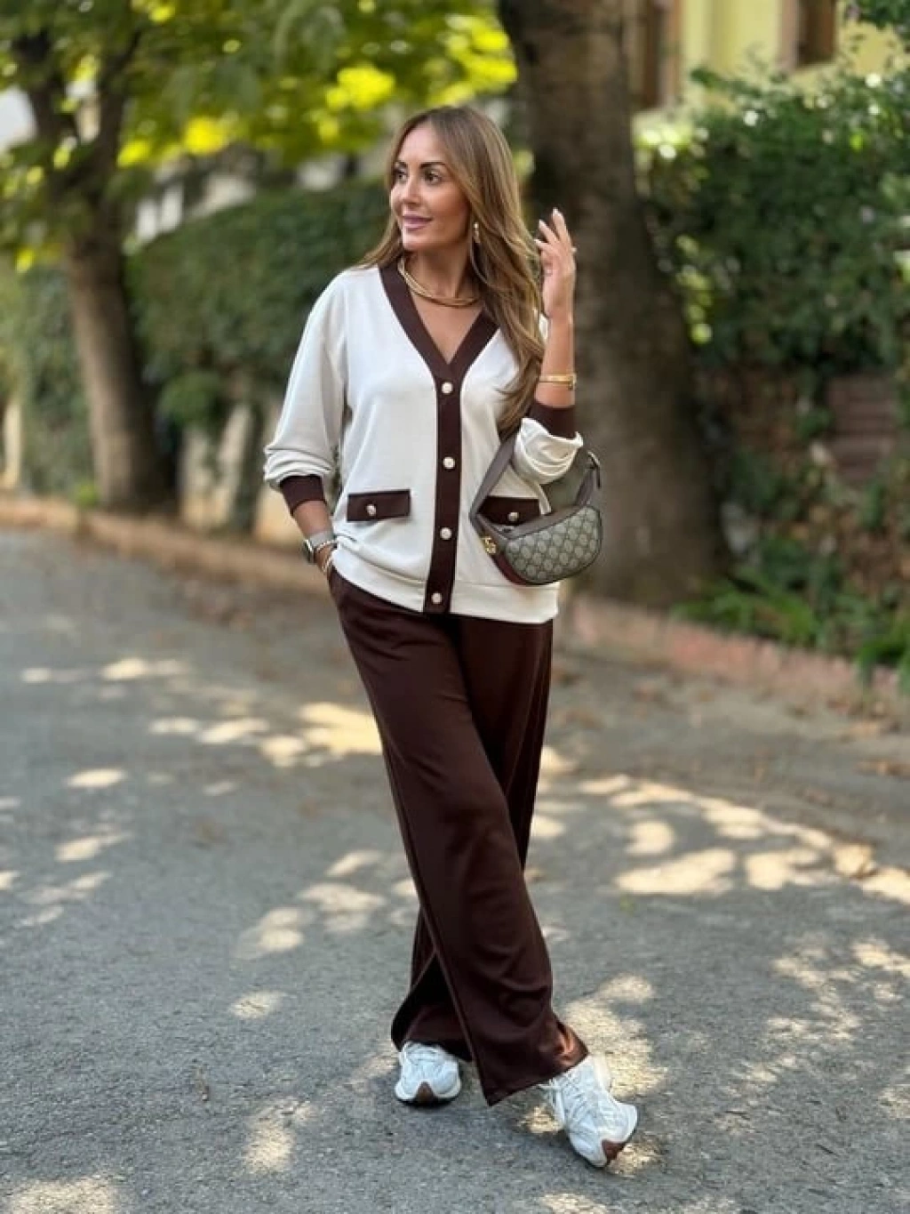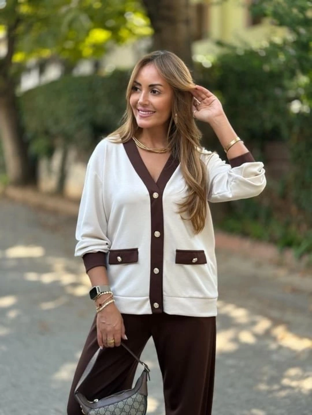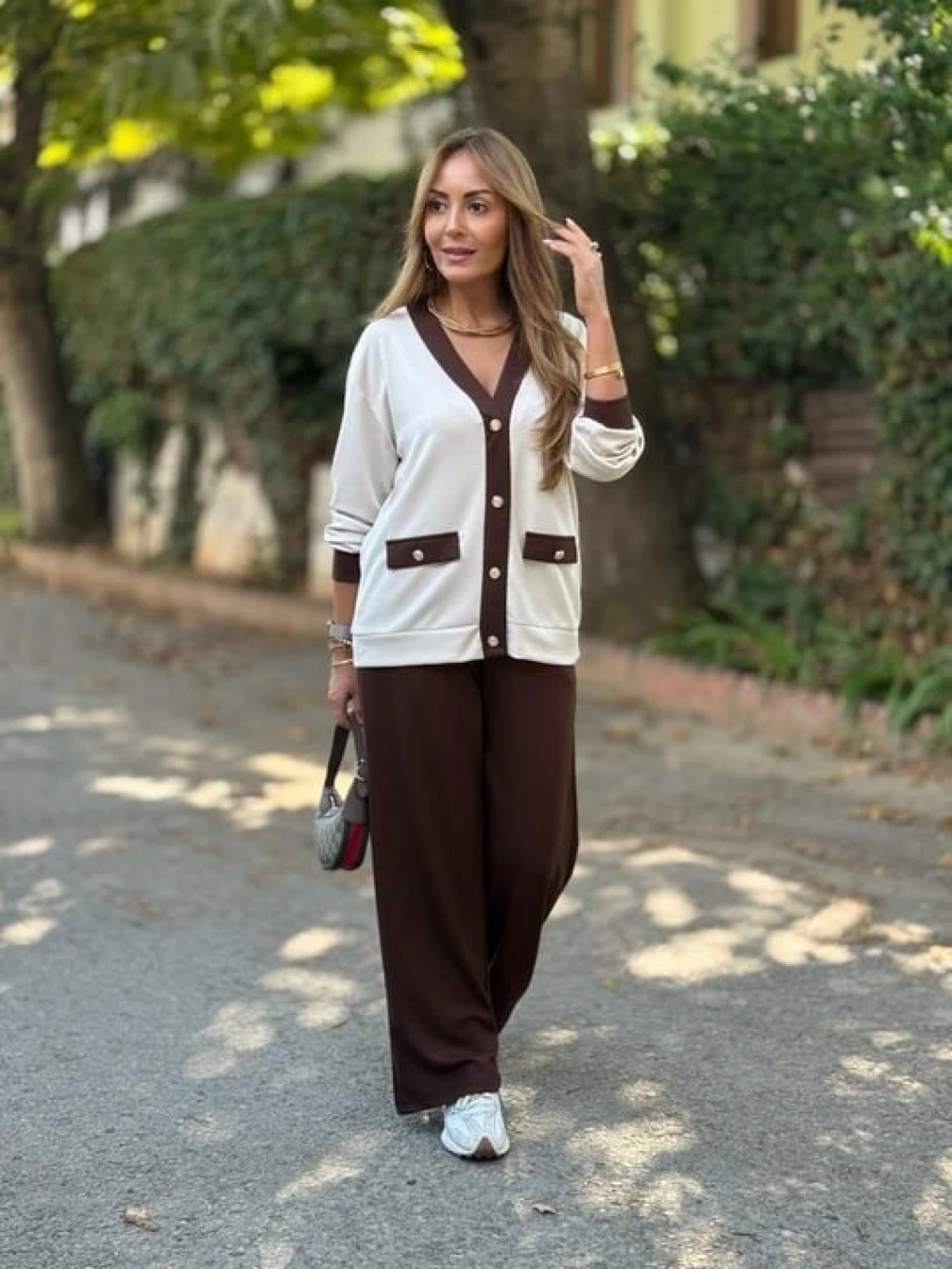 Kadın Uzun Kollu Ribanali Cep Detay Hırka Ve Bol Paça Pantolon Ikili Takım