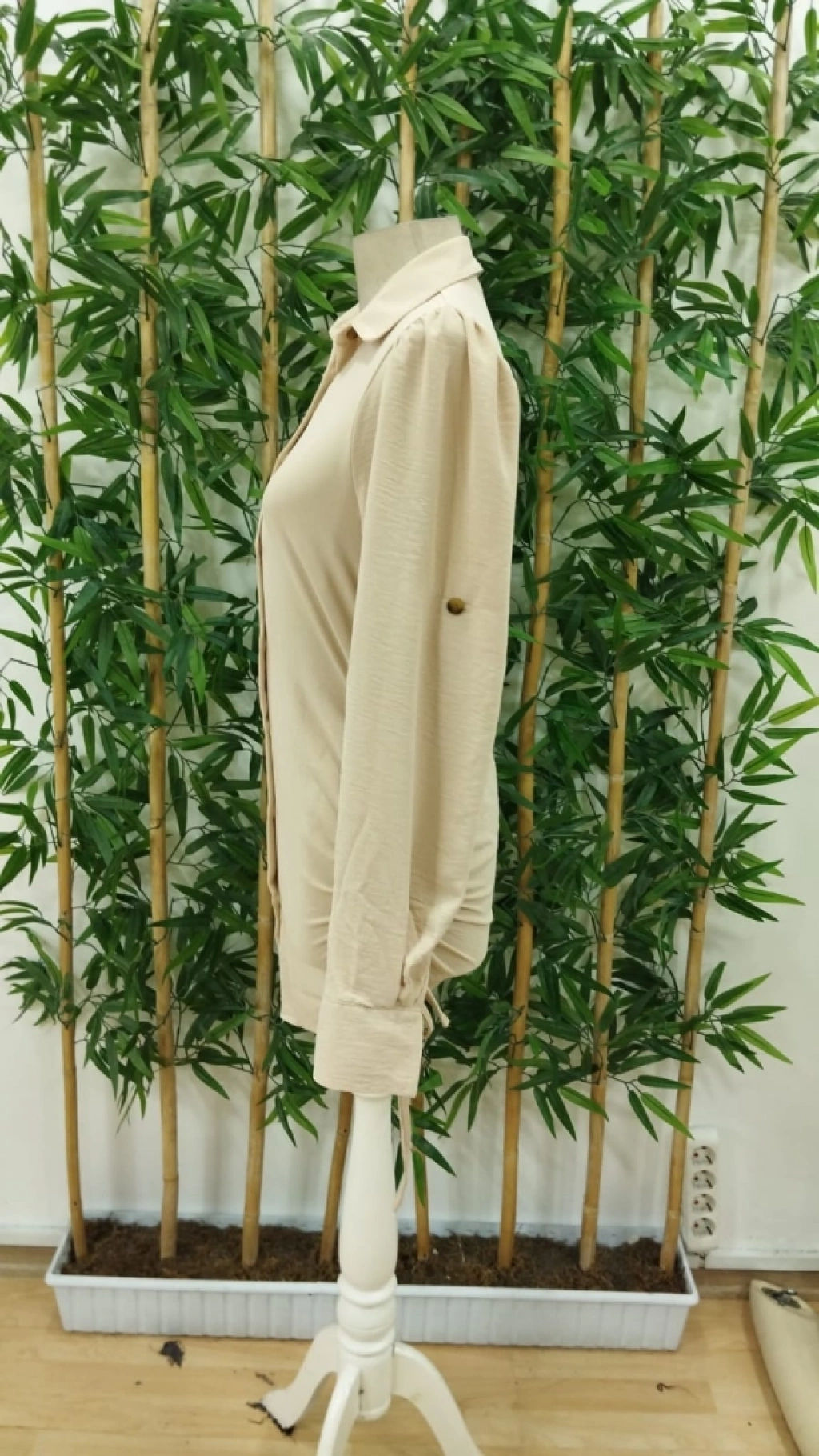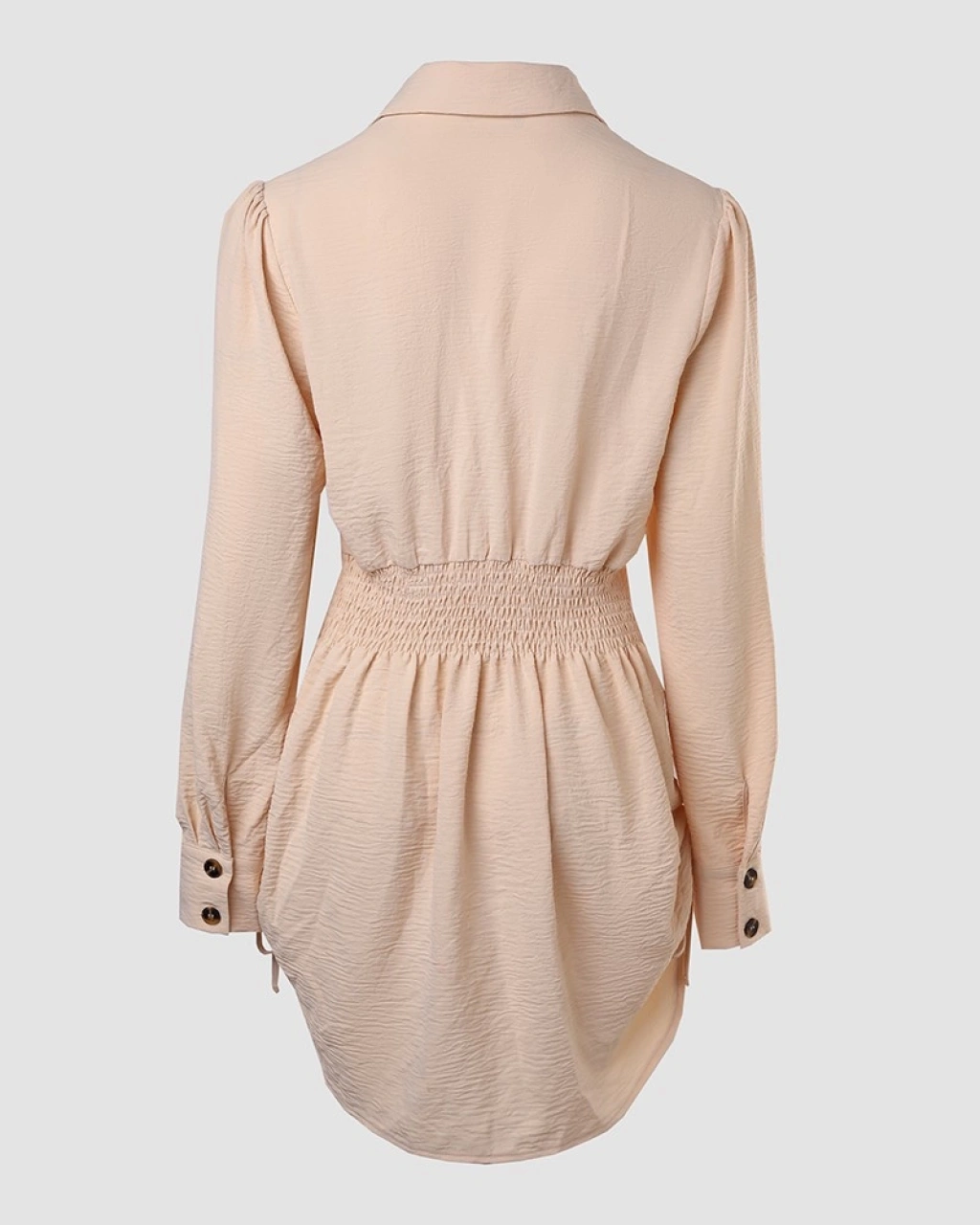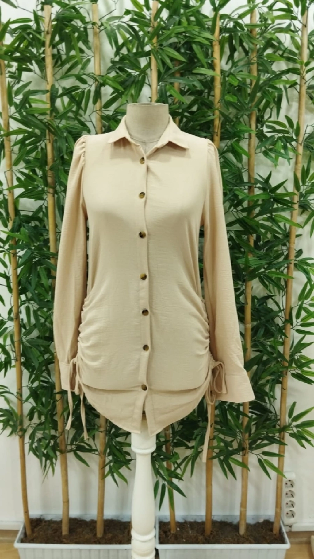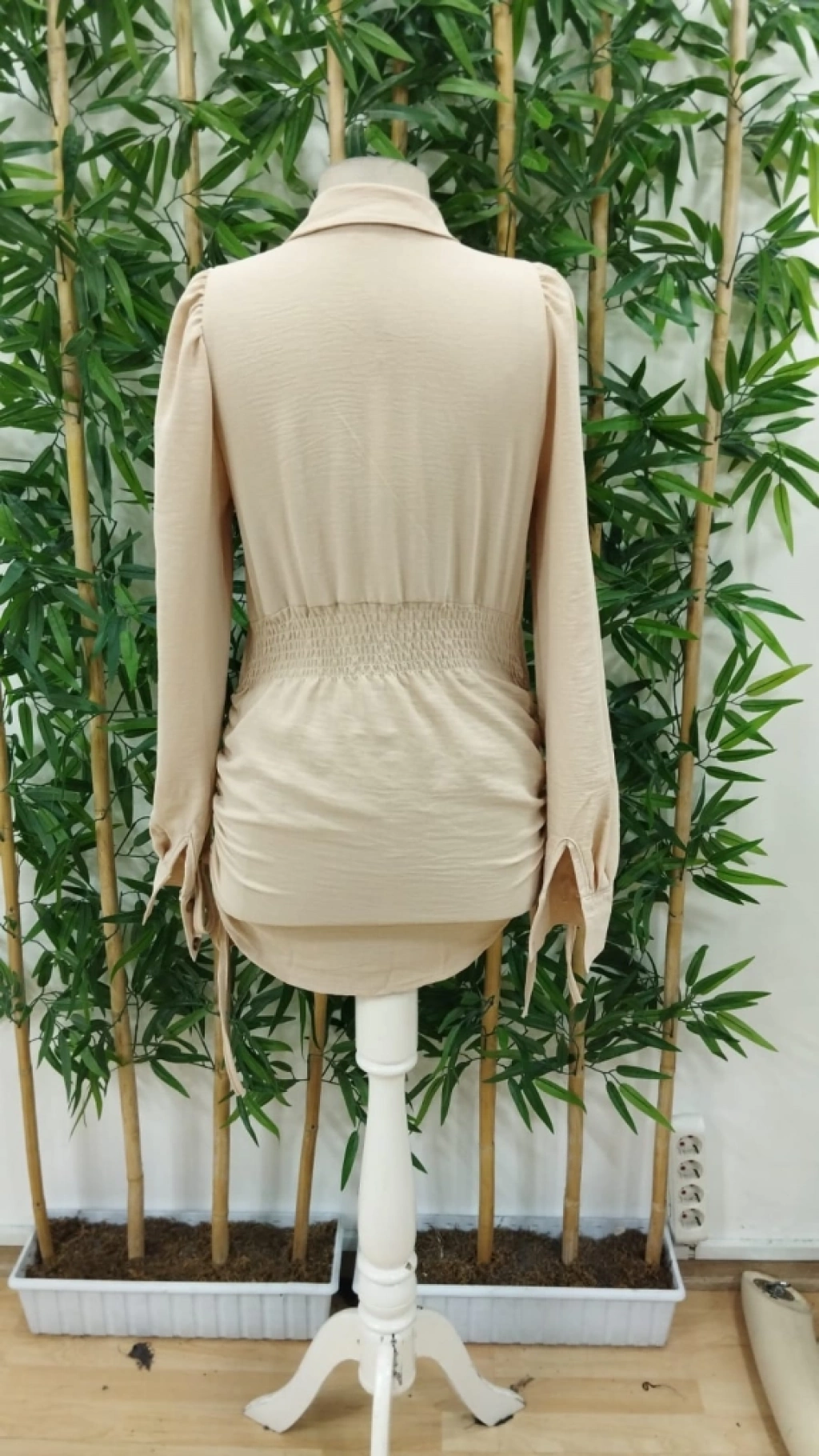 Kadın Uzun Kollu Gömlek Yaka önden Düğmeli Yanlardan Büzgülü Kısa Aerobin Elbise
