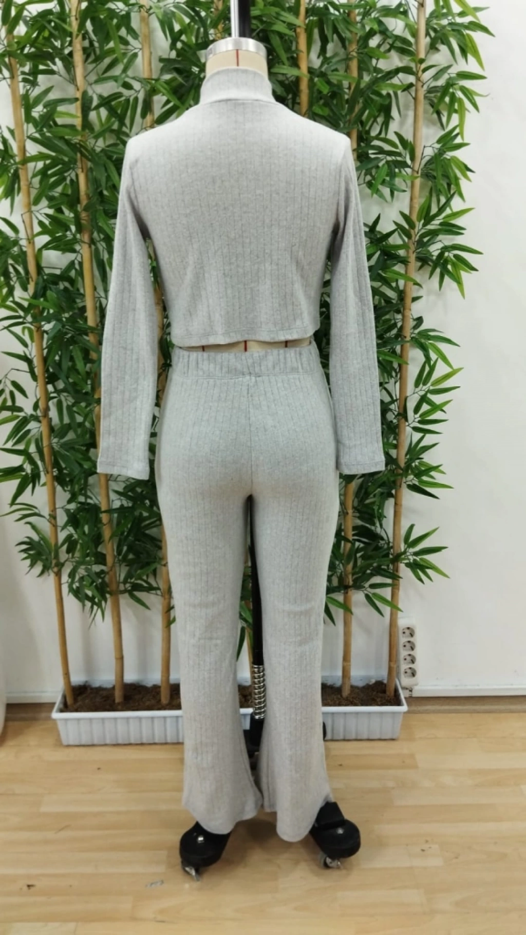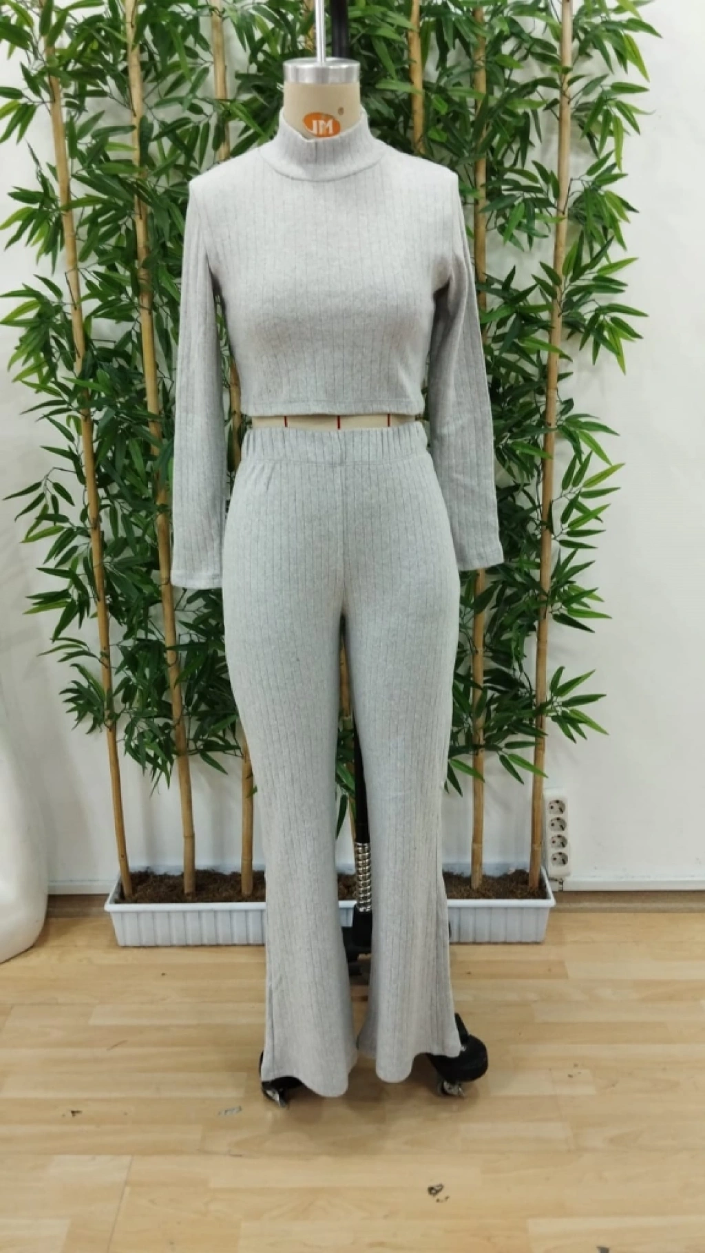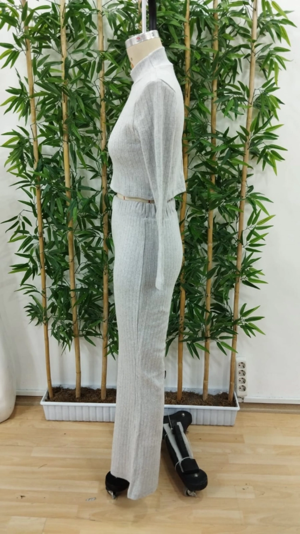 Kadın Uzun Kollu Balıkçı Yaka Krop Ve Pantolon şardonlu Kaşkorse Ikili Takım