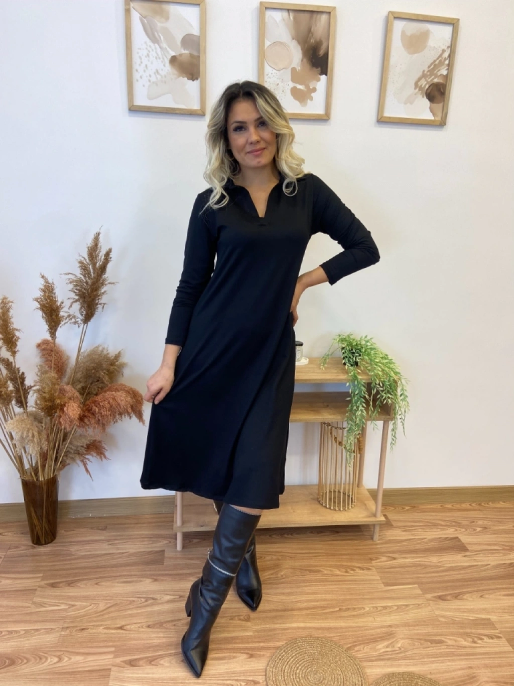 Kadın Uzun Kollu Yakalı Midi Viskon Iki Iplik Elbise