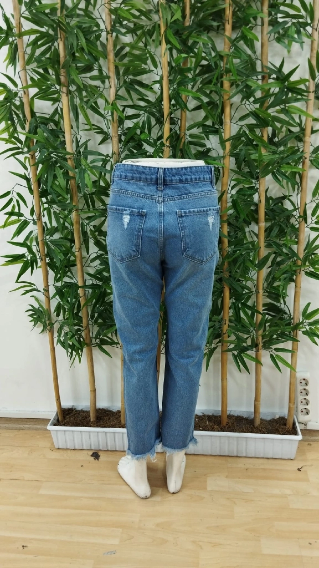 Kadın Dar Kesim Cepli önden Yırtık Desenli Denim Pantolon