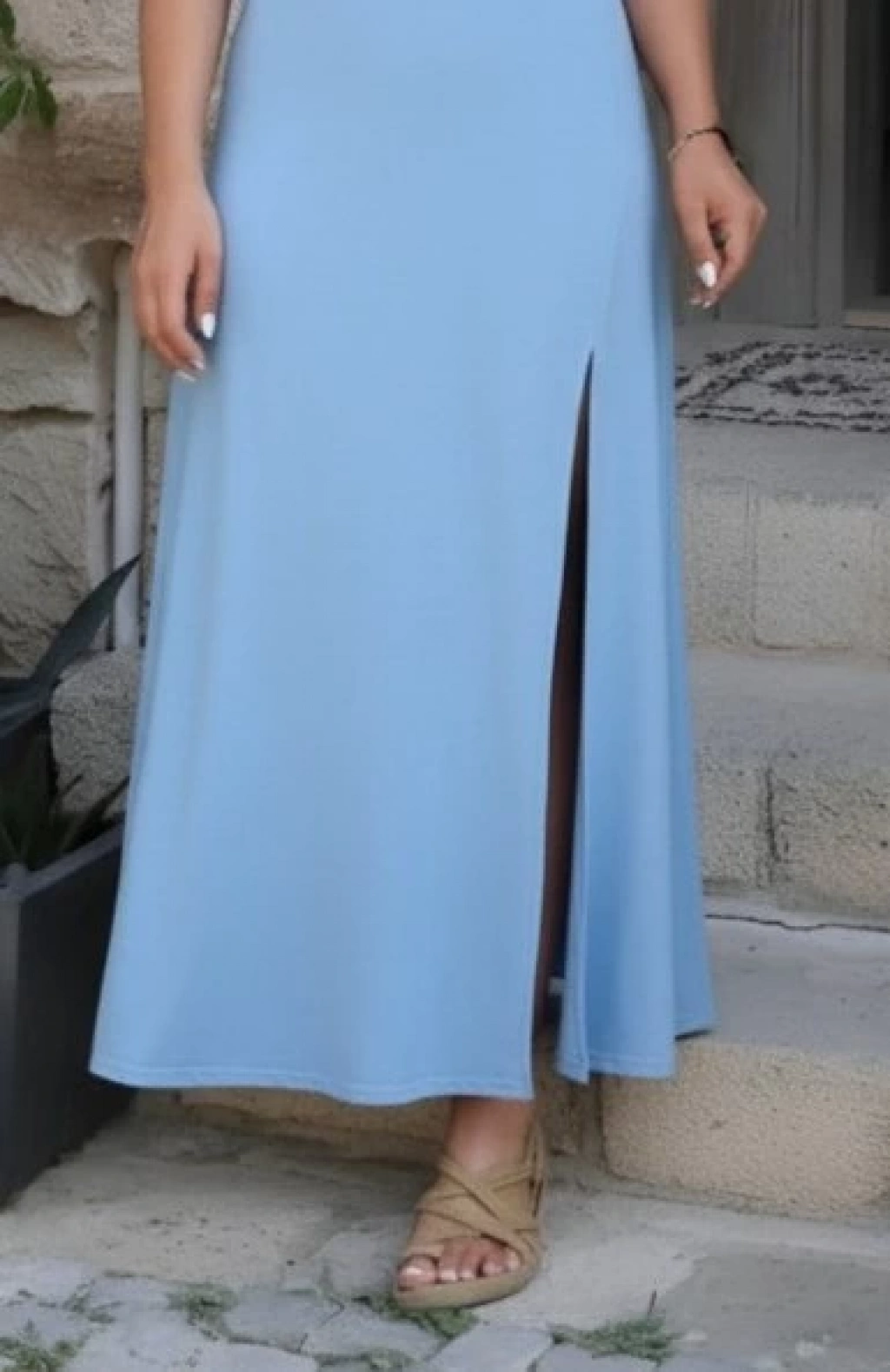 Kadın Askılı V Yakalı Yırtmaçlı Uzun Viskon Elbise
