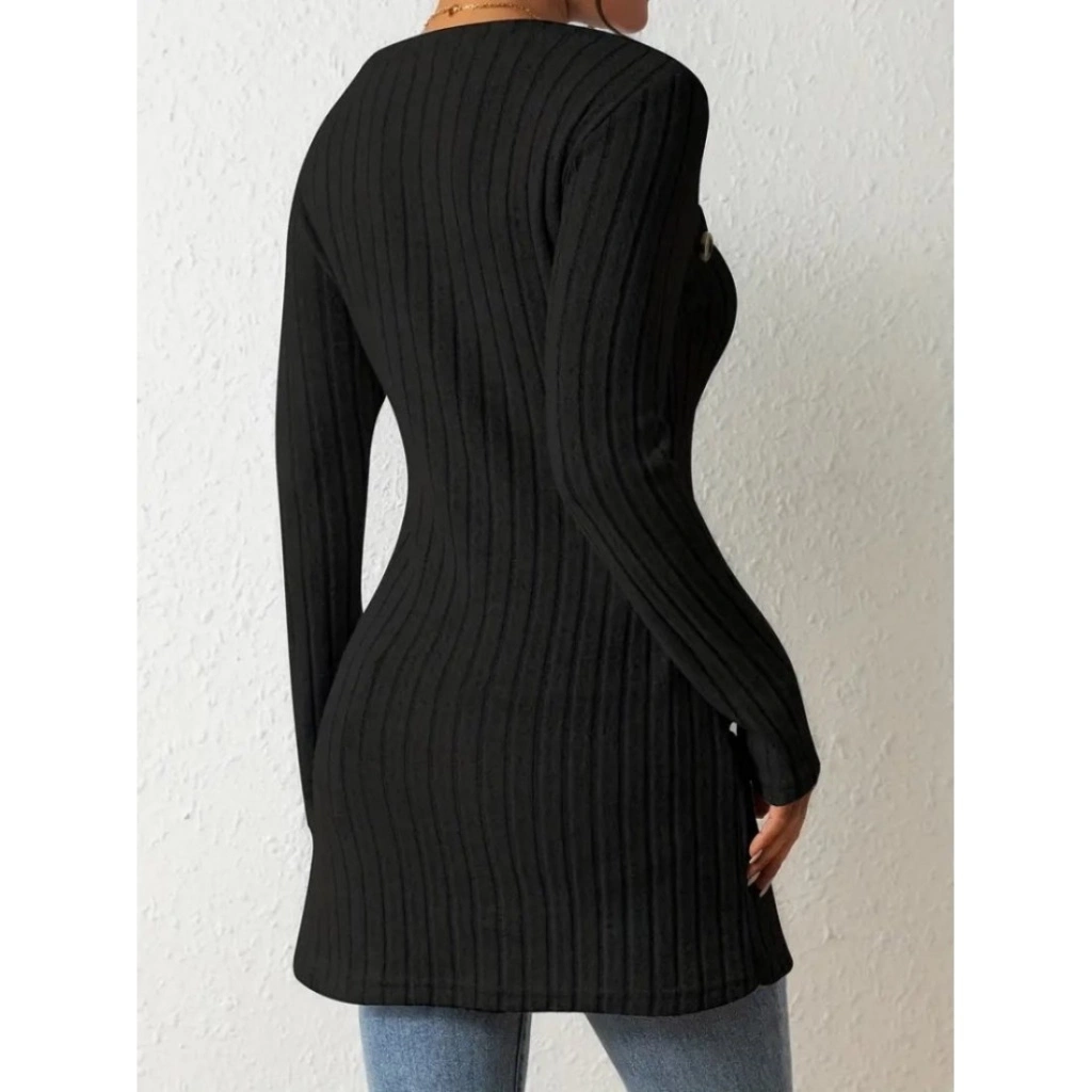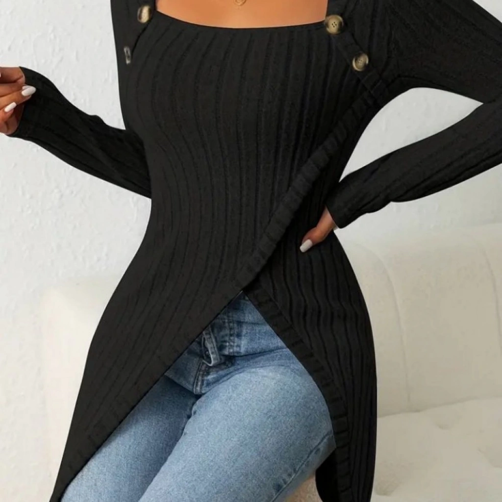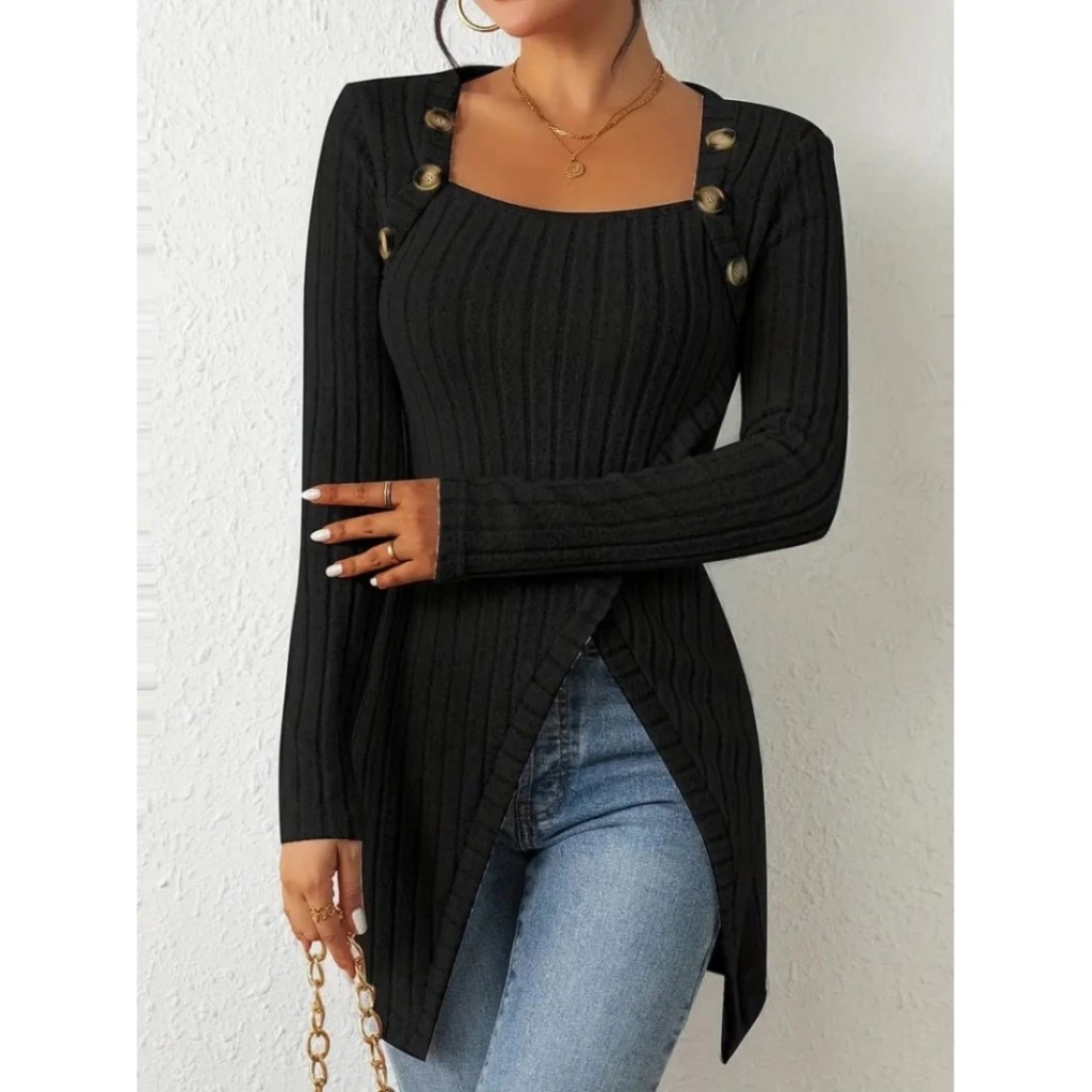 Kadın Uzun Kollu Derin Kare Yaka Düğme Detay şardonlu Kaşkorse Kruvaze Bluz