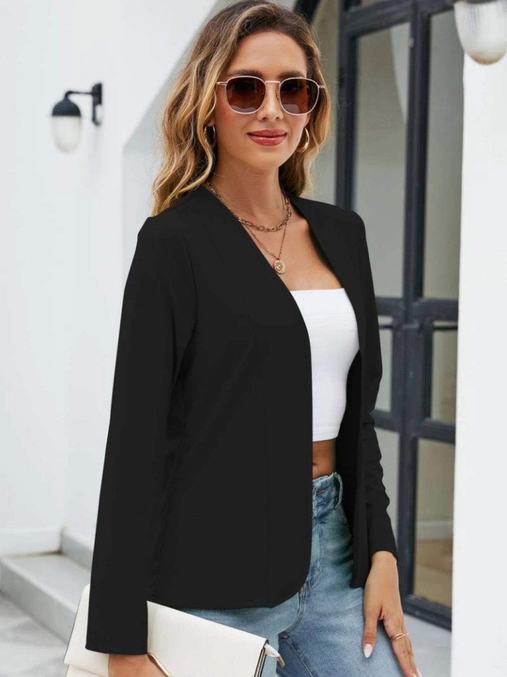 Kadın Uzun Kollu önü Açık Ithal Krep Blazer Ceket