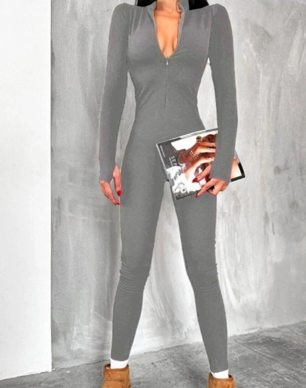Kadın Uzun Kollu V Yaka Baş Parmak Geçirmeli Detay Kaşkorse Tulum