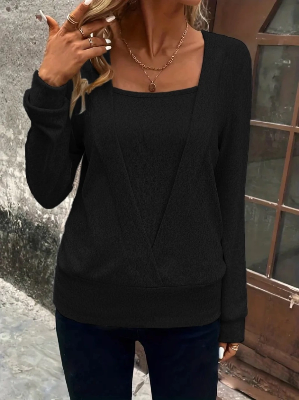 Kadın Uzun Kollu Kruvaze Yaka Kol Ve Etek Ucu Manşet Detay Yumoş Bluz