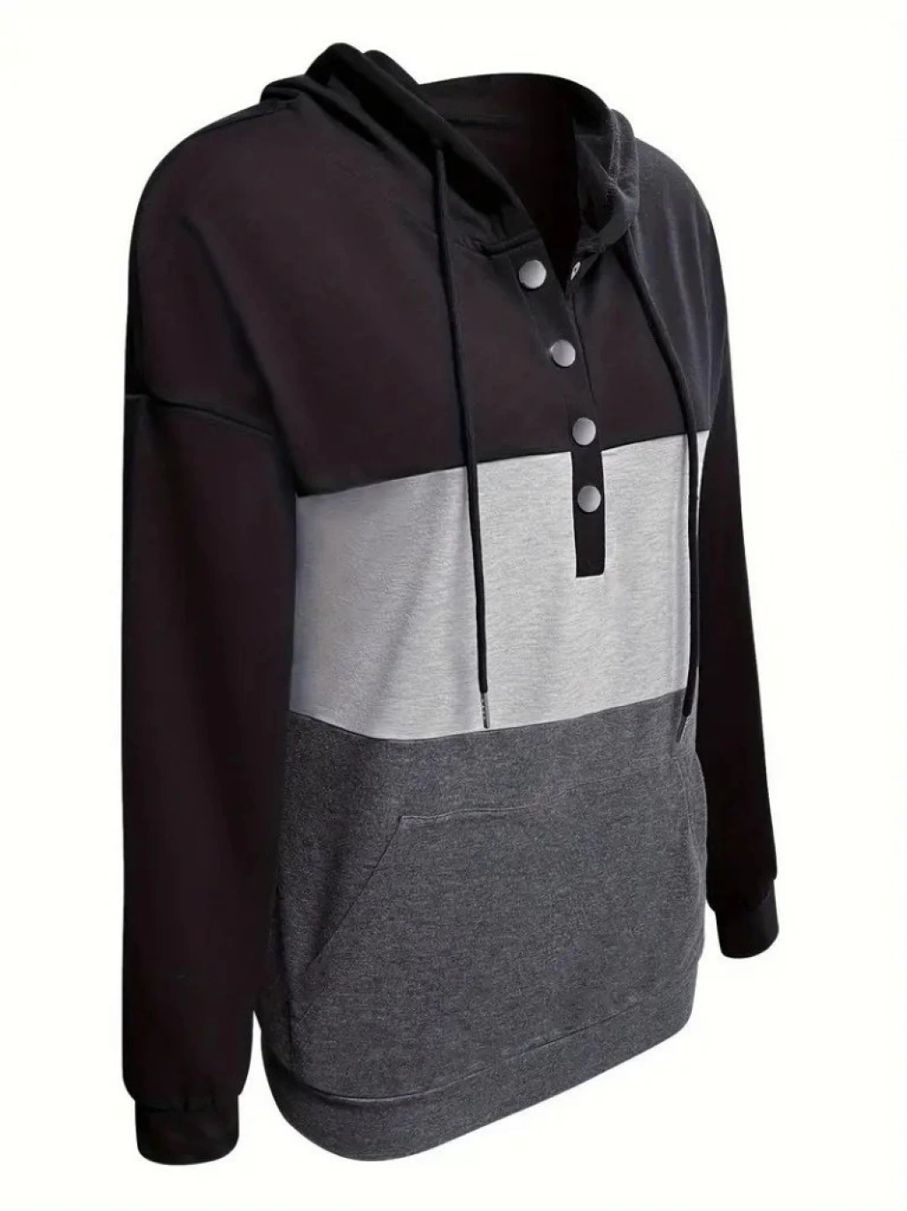 Kadın Uzun Kollu Kapşonlu çok Renkli Iki Iplik Bluz