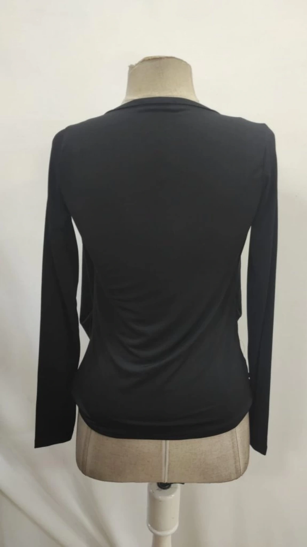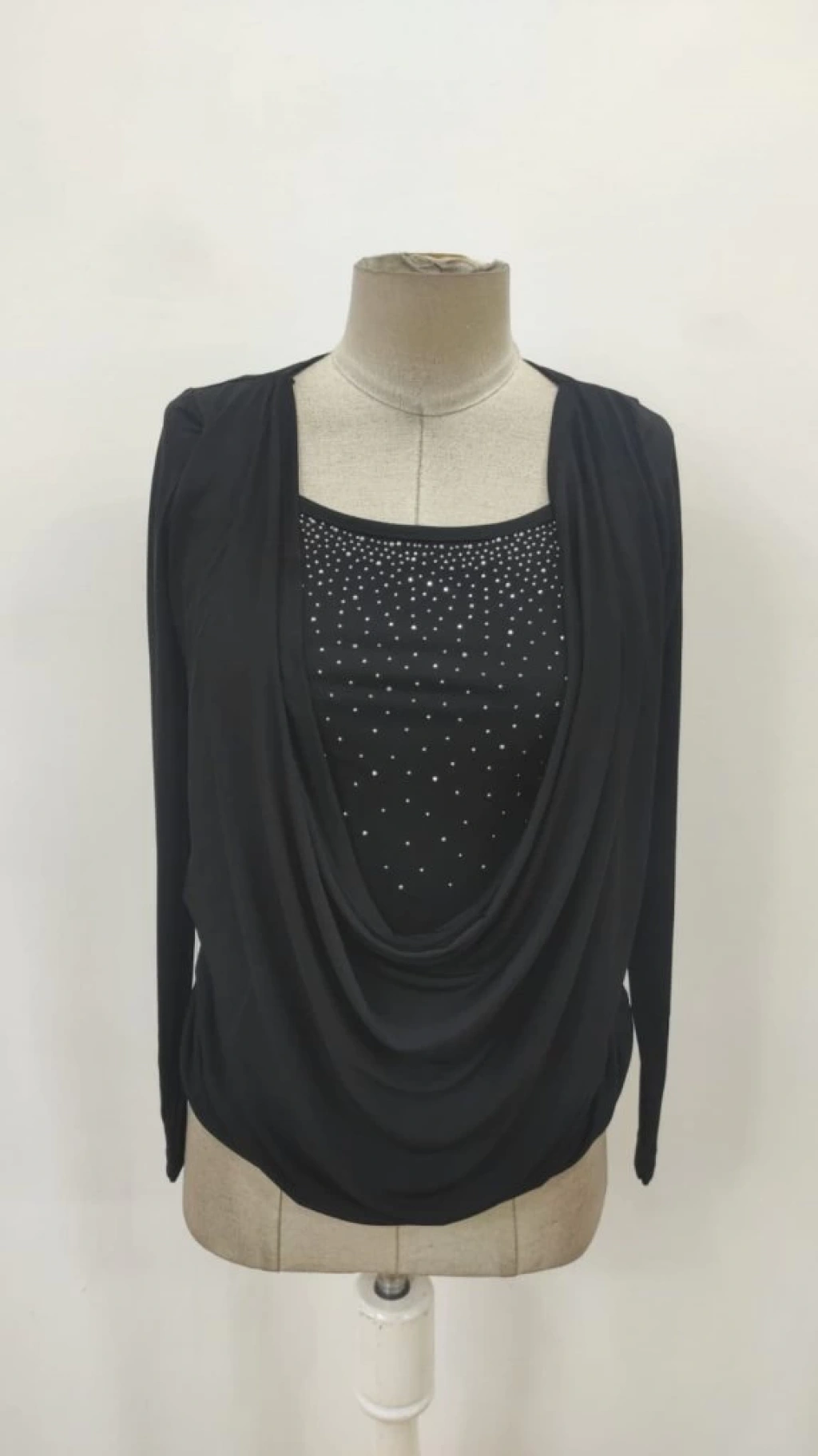 Kadın Uzun Kollu Derin Degaje Yakalı Taşlı Sandy Bluz