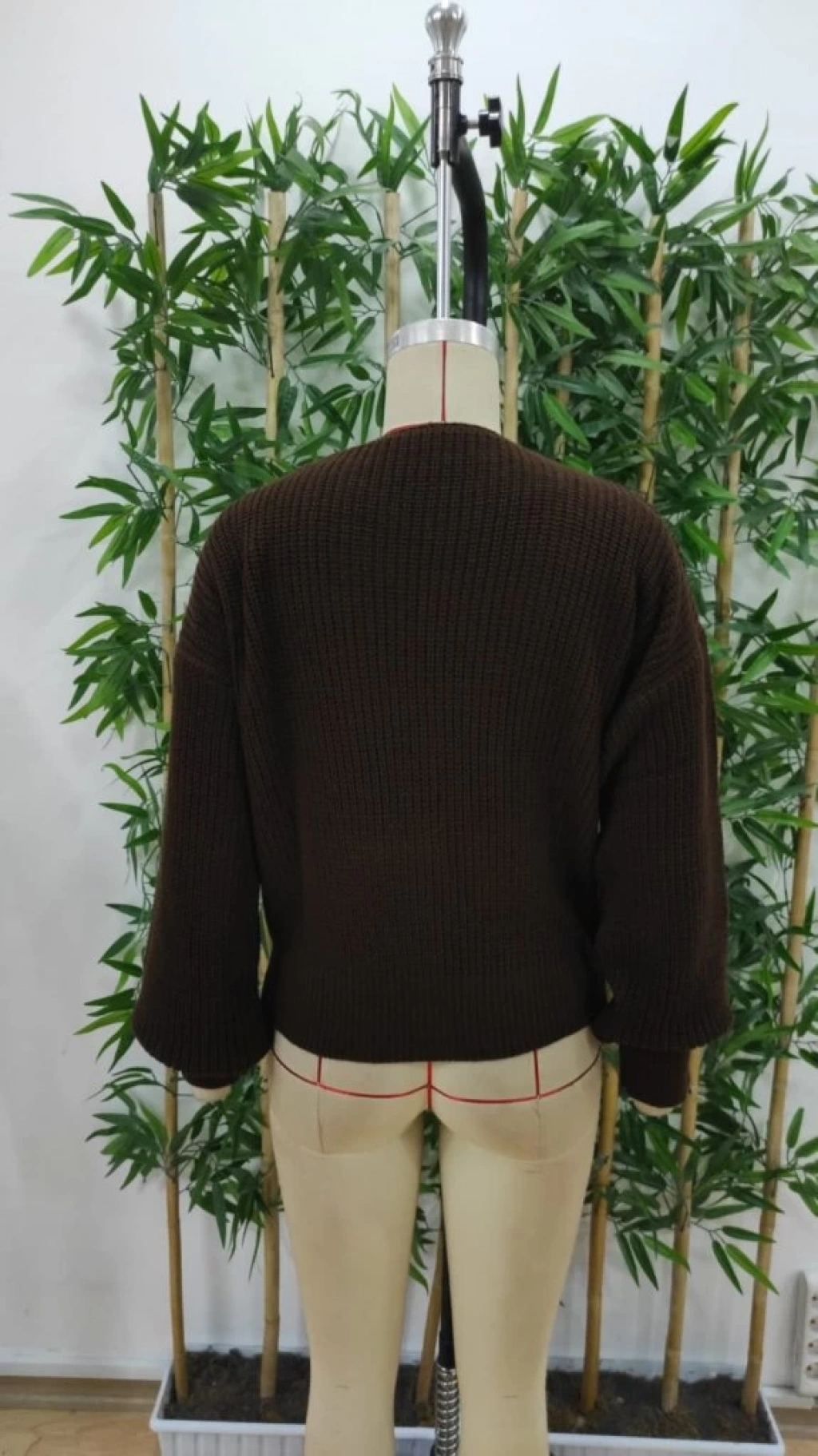 Kadın Uzun Kollu Düğme Detay Triko Hırka