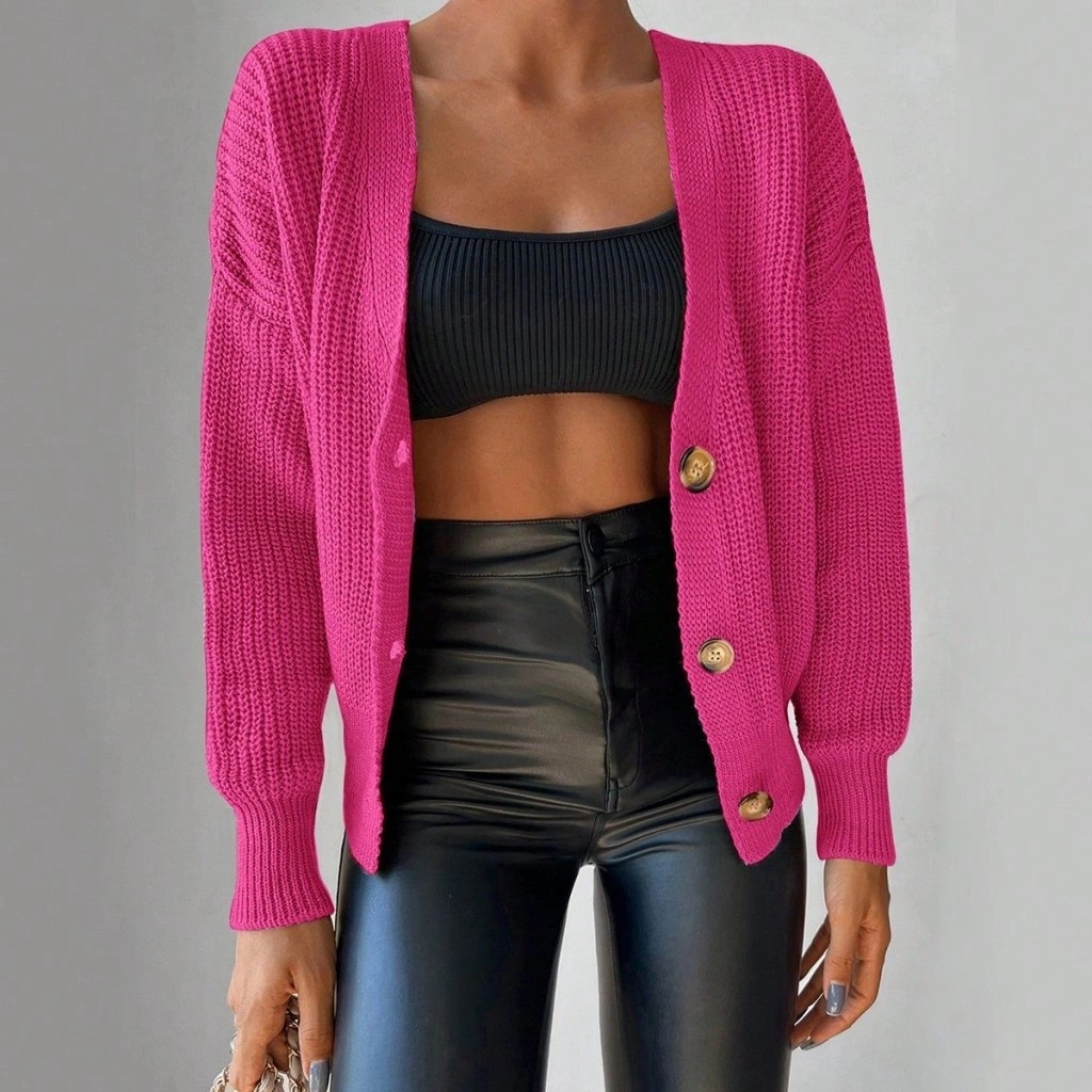 Kadın Uzun Kollu Düğme Detay Triko Bluz