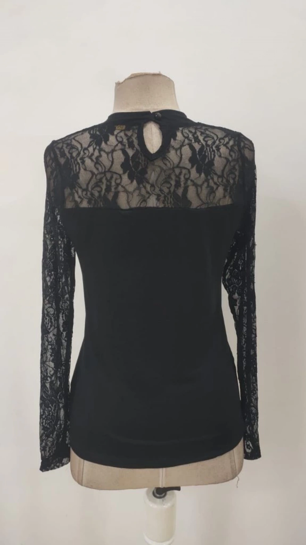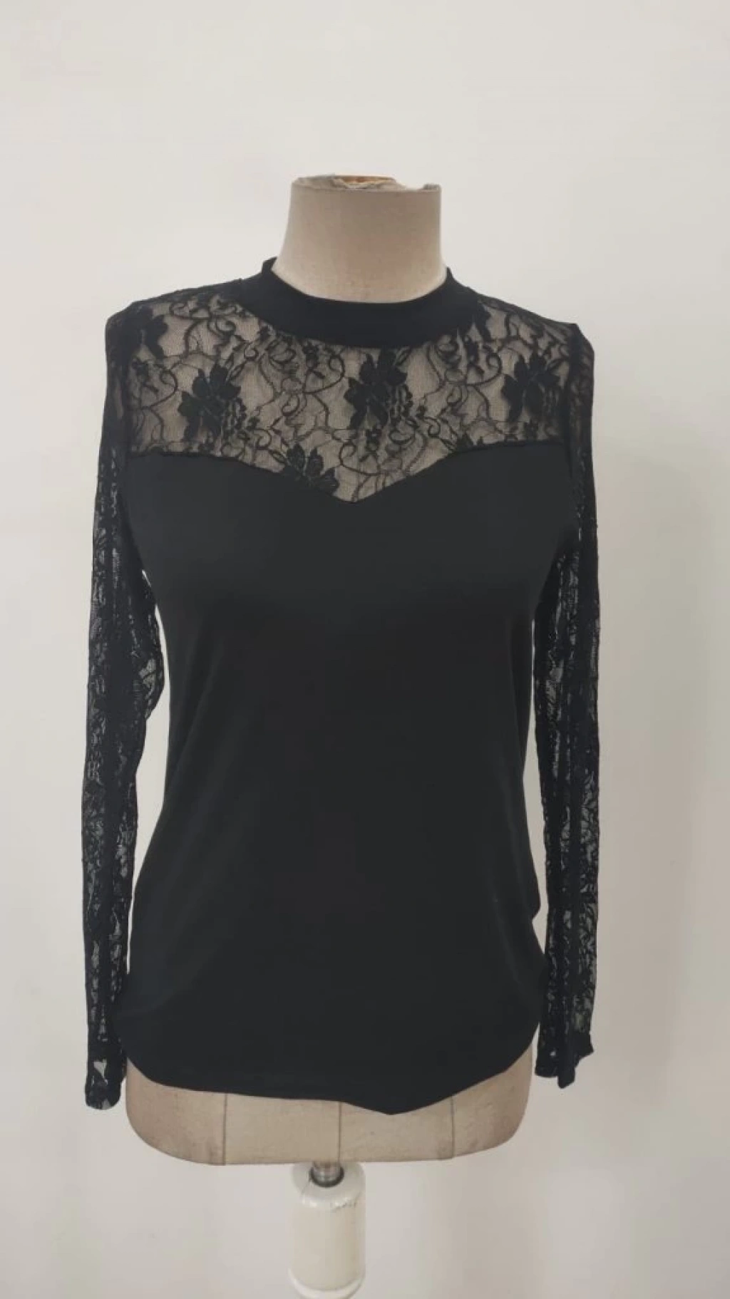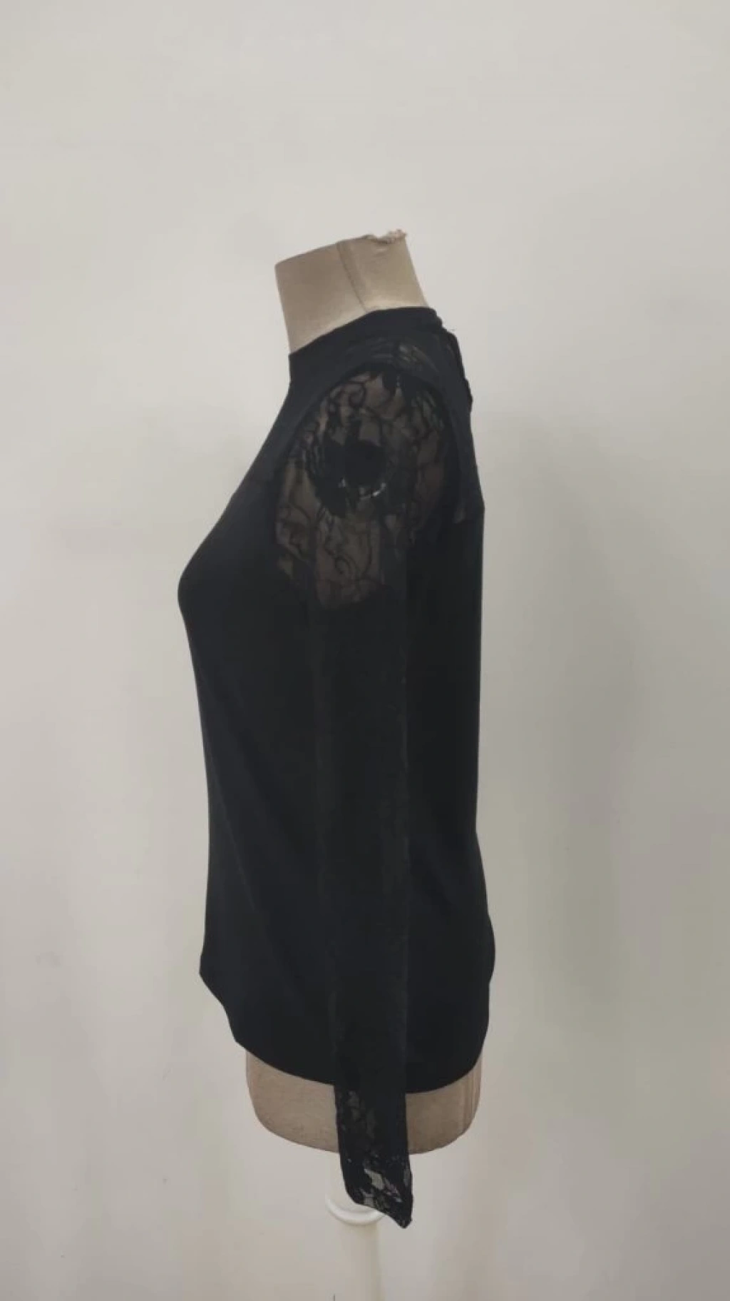 Kadın Uzun Kollu Dantel Detaylı Viskon Bluz