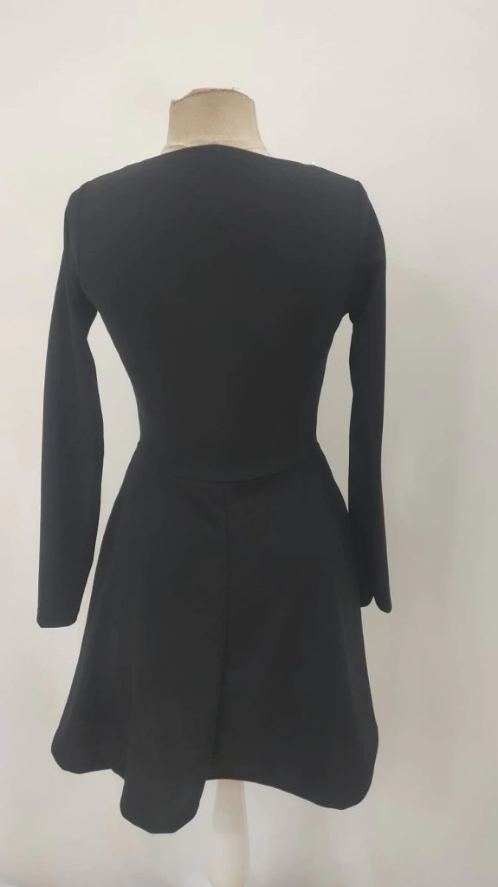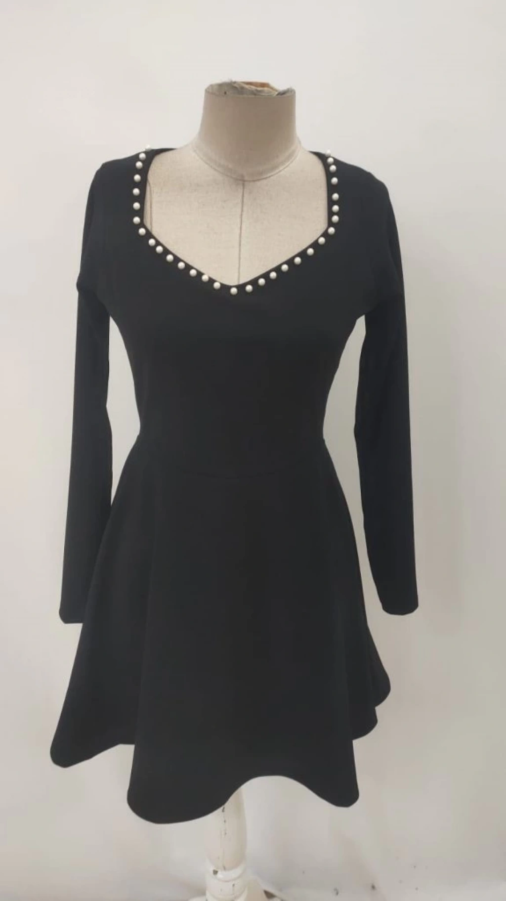 Kadın Uzun Kollu Inci Yakalı Kısa Ithal Krep Elbise