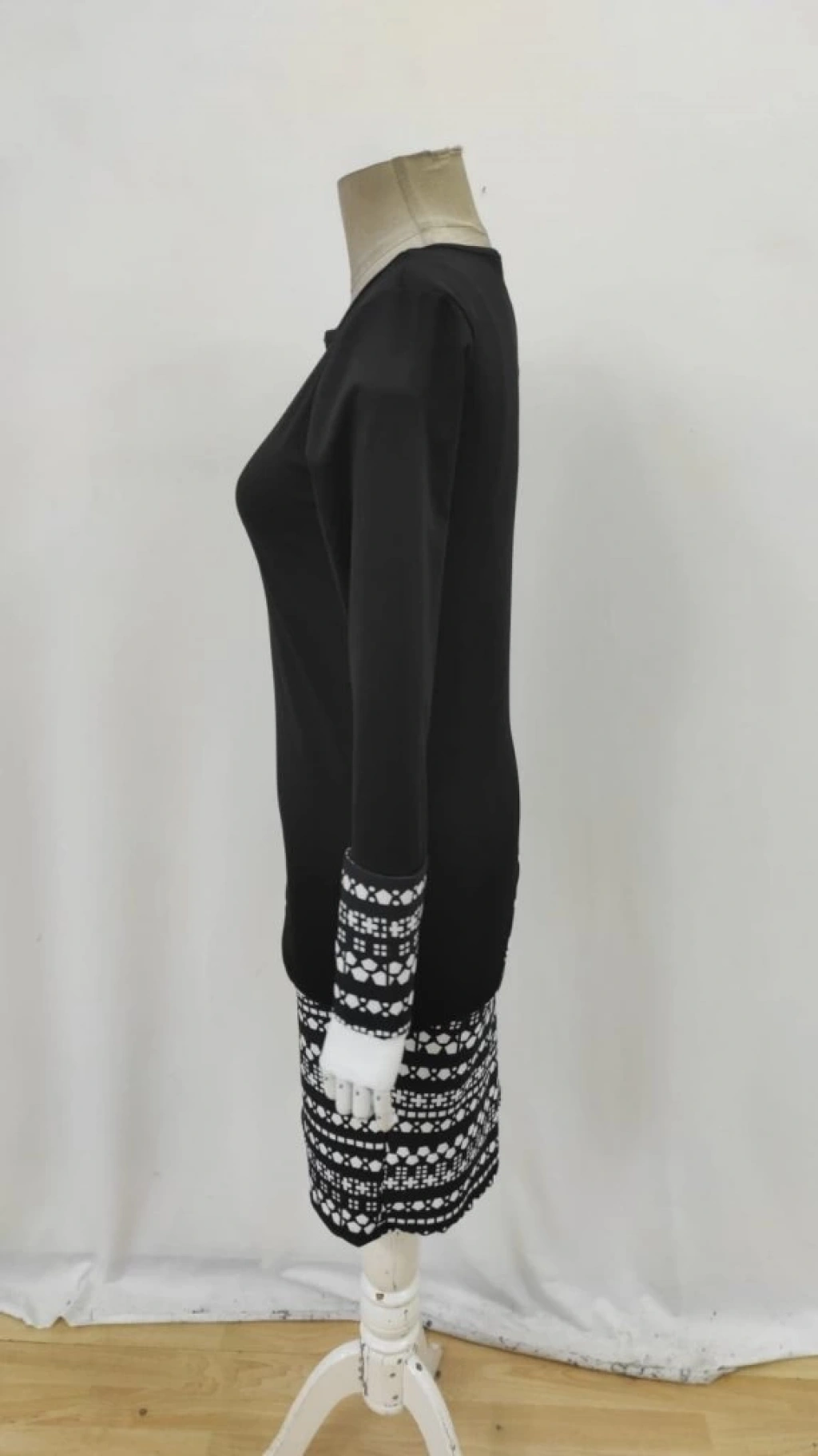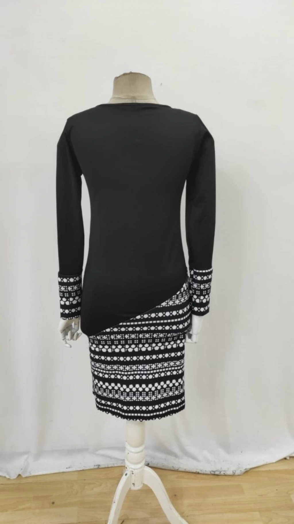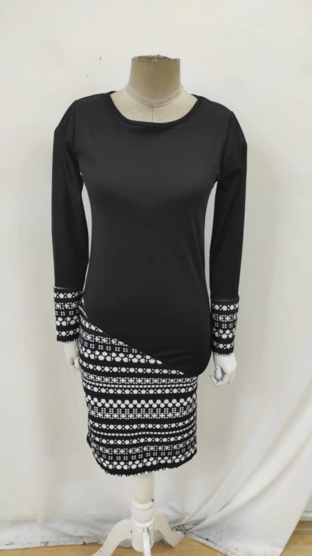 Kadın Uzun Kollu Bisiklet Yaka Desenli Dalgıç Elbise