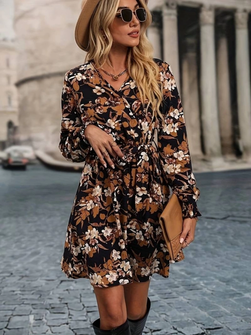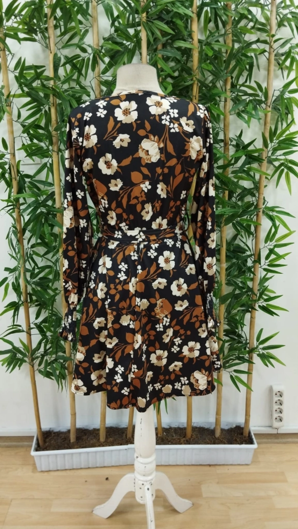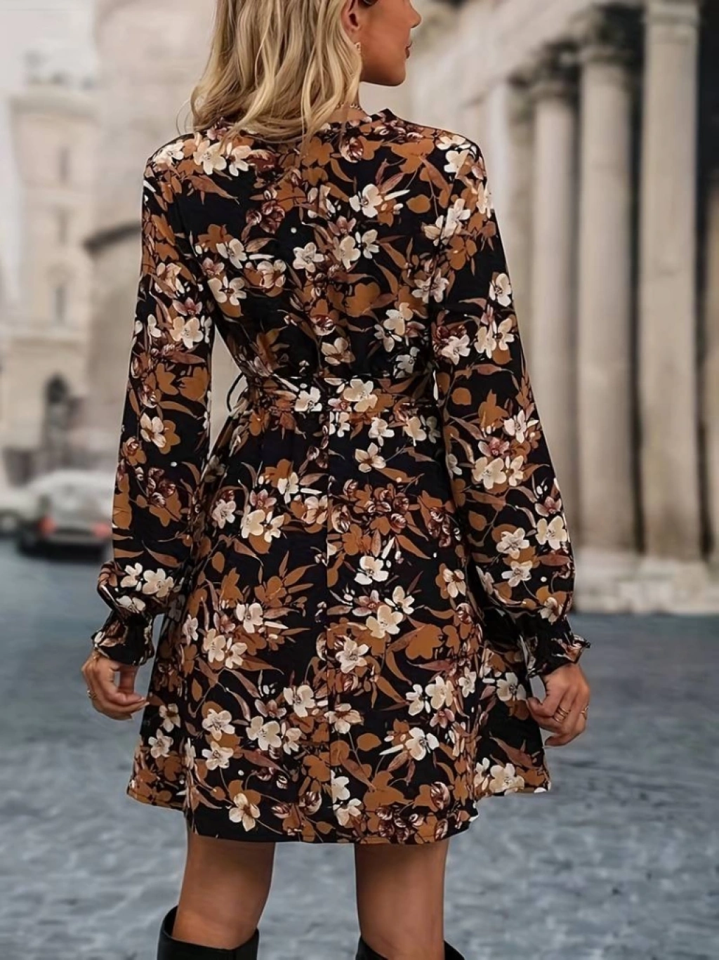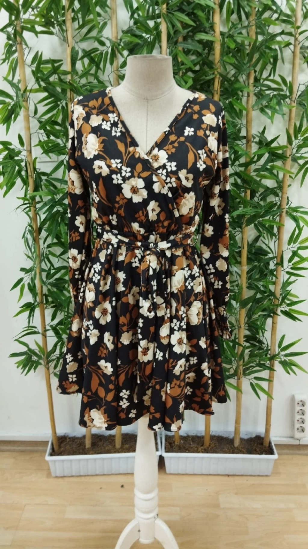 Kadın Uzun Kollu Kruvaze Yaka çiçek Desenli Dalgıç Elbise